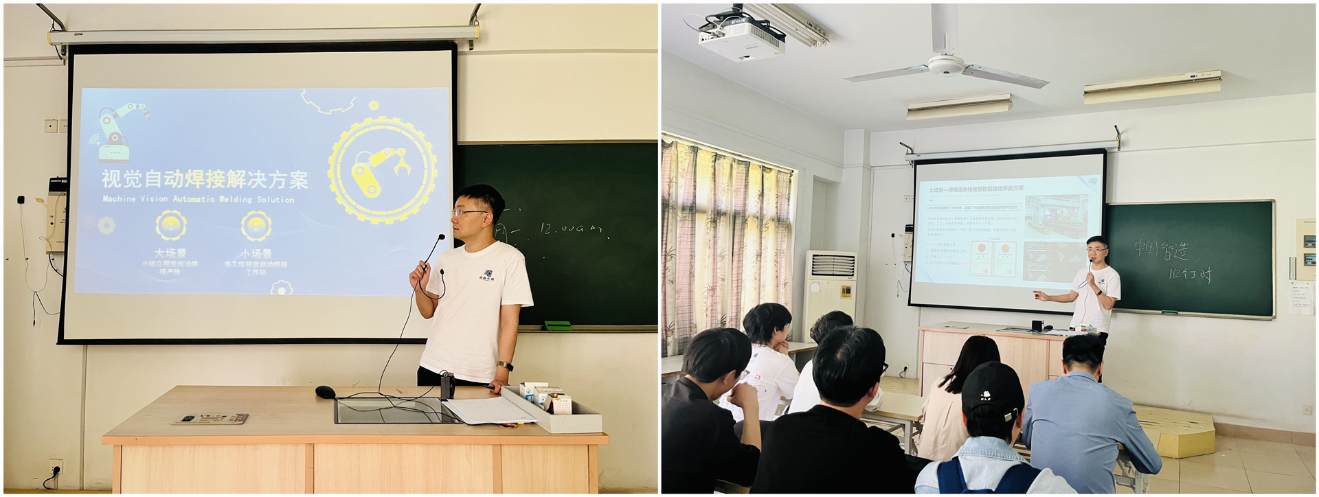 蒋琦以“人工智能时代下的中国制造”为主题,重点讲解了计算机视觉技术的发展历程、前沿趋势与未来前景,分析了云计算、物联网、人工智能领域的发展及人才需求,介绍并展示了计算机人工智能视觉技术如何助力“中国制造2025”发展。在他的讲解下,同学们更切身的了解到计算机行业未来面临的机遇与挑战。