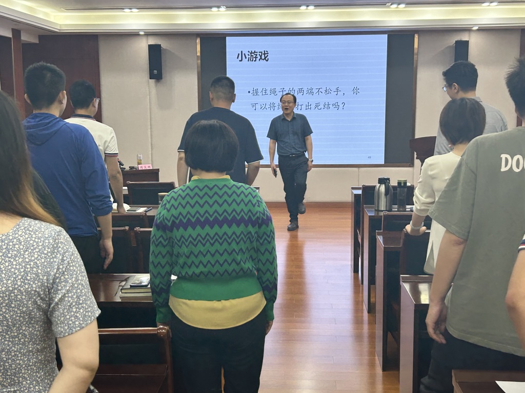 随后,周教授结合丰富的实践经验和扎实的理论基础,围绕压力识别、压力价值、情绪调适与疏导等方面,用“多维+多元”的视角正视心理压力,揭秘拥有幸福健康生活的密码。讲座中,周教授还利用解压互动小游戏,增强了全体与会人员的现实体验感,为全体辅导员的心理健康开了一剂良方、注入了新的能量。