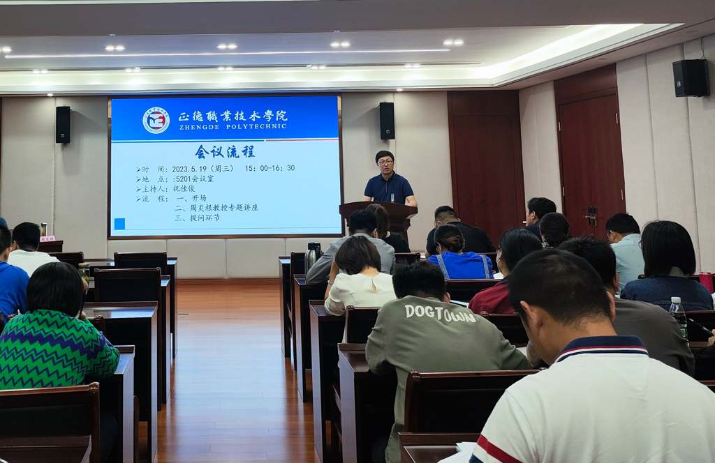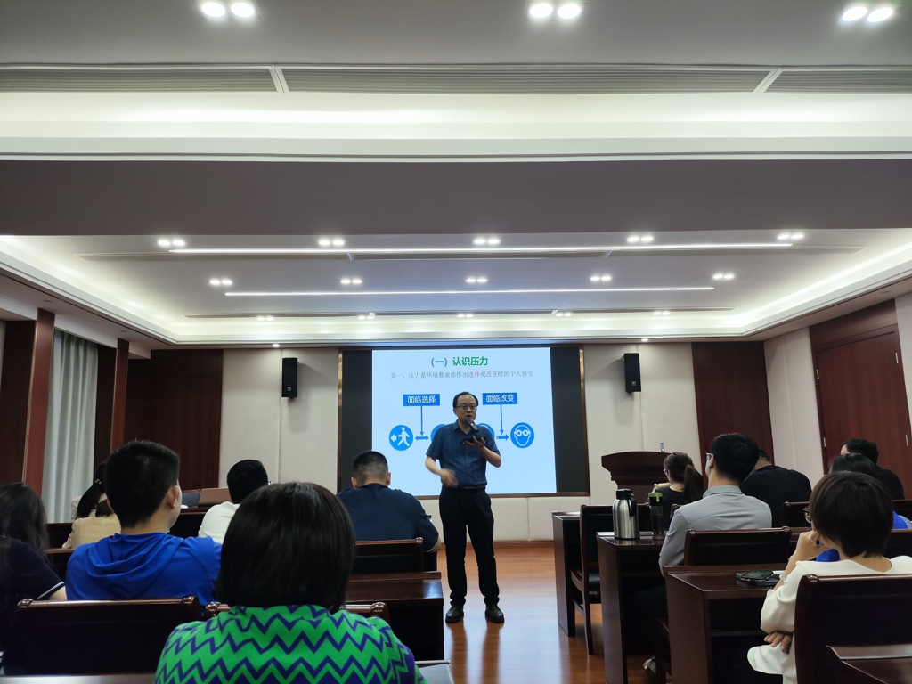 讲座伊始,周教授提出作为大学生健康成长的引路人,辅导员应科学掌握适合自己的方法,用良好的心态正确认识职业压力,及时有效地进行自我心理调节,从而化解职业压力,尽力排除职业倦怠情绪,始终做到以健康良好的心态坚守岗位、投入工作,以激情饱满的状态引导学生、服务育人,在辅导员职业发展的道路上,不断寻找并提高自我价值的归属感、成就感和幸福感。