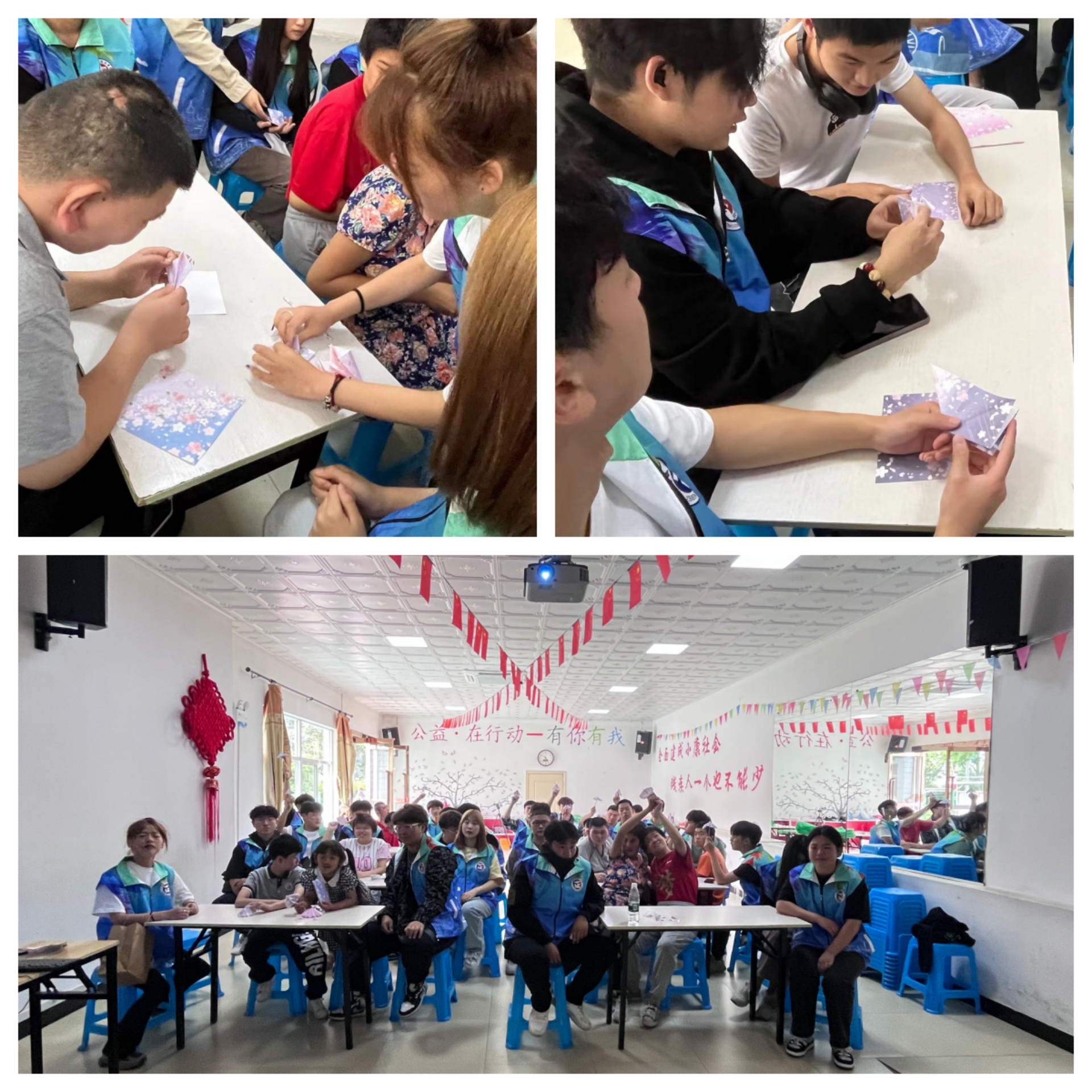 接着,志愿者通过现场指导,教孩子们利用彩纸做出雨伞。手工课旨在培养孩子们的动手操作能力,同时也培养孩子们思维能力,开拓创新能力,充分展示孩子的想象力,以及积极思考的能力。