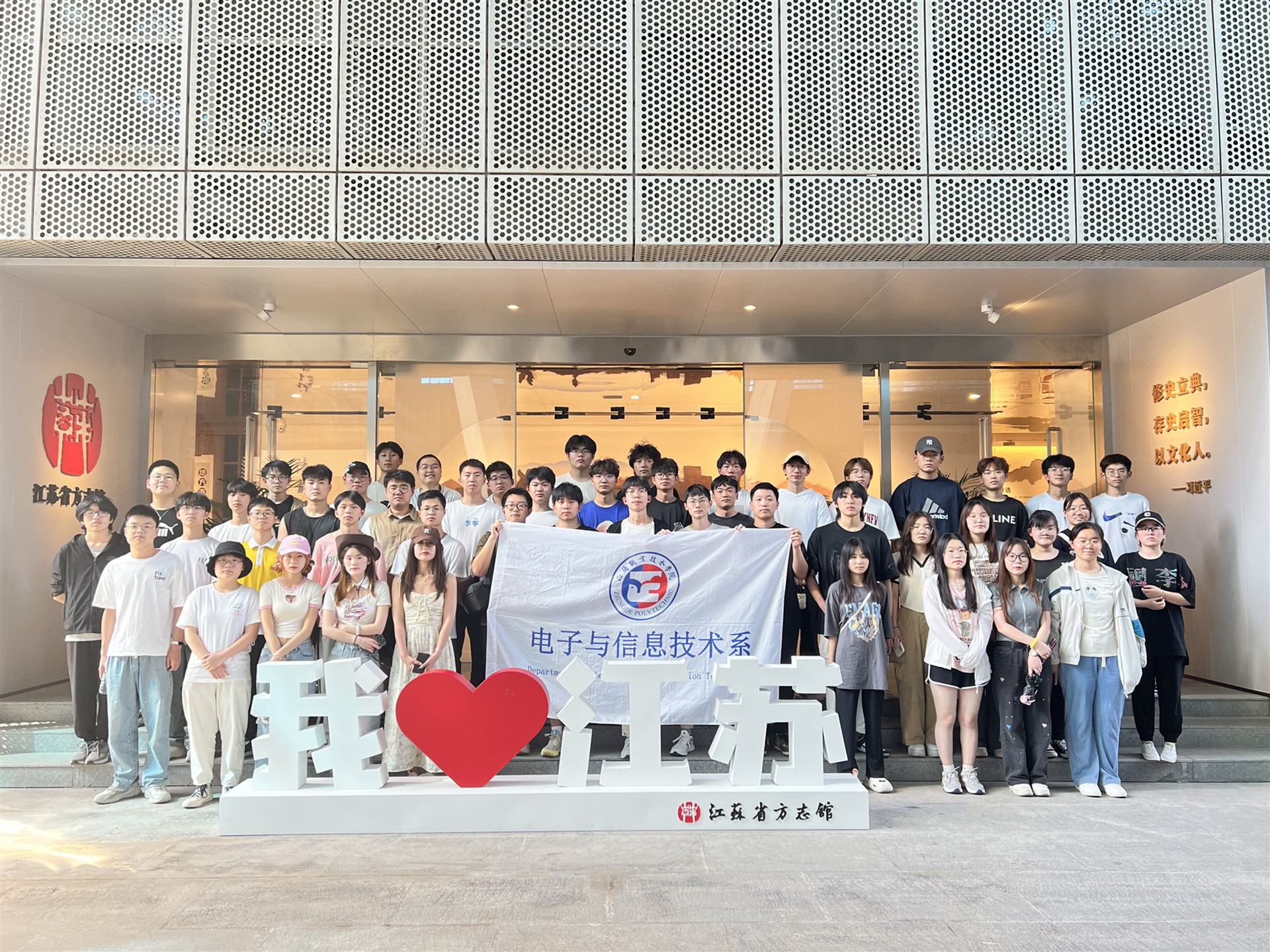 习近平总书记在党的二十大报告中指出,以社会主义核心价值观为引领,发展社会主义先进文化,弘扬革命文化,传承中华优秀传统文化。为持续推进“大思政课”建设,激发爱国爱江苏的热情,在实践中弘扬中华优秀传统文化,6月8日下午,电子与信息技术系赴江苏省方志馆开展“方志之乡,志载千年”——“行走的思政课”主题实践活动。