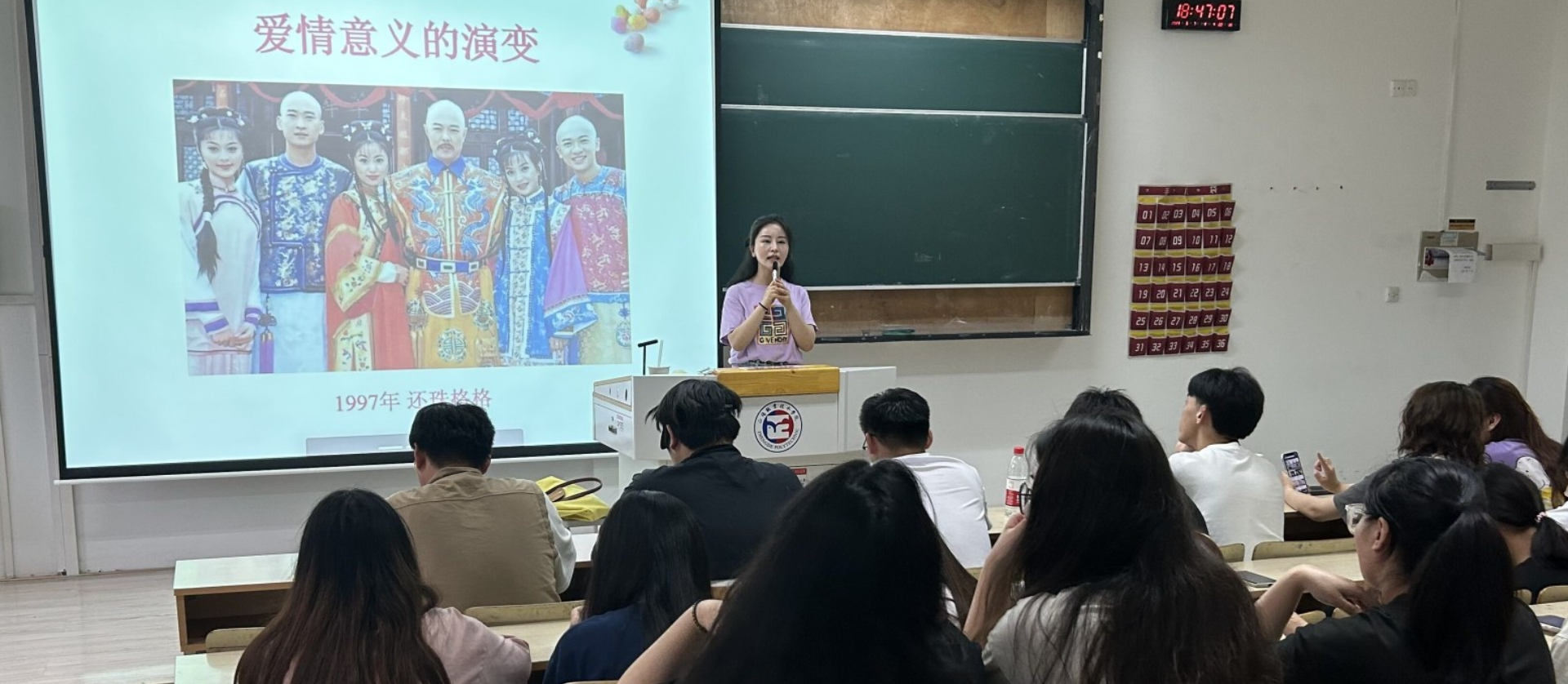 刘老师从“爱情在当代的意义”、“爱情关系中的矛盾”及“恋爱关系里的建议”三个部分展开,和同学们围绕青春期的心理特点、什么是依恋和爱情、如何正确认识和理解恋爱等问题进行了分享和交流,并结合了大学生恋爱的实际情况和案例,引导同学们树立正确的恋爱观。最后,刘老师分享到:“爱不只是冲动和好奇心,不只是满足一己之私,更是一种责任和尊重,是携手共同成长的快乐,是相互理解,不断完善自我人生必修课”。