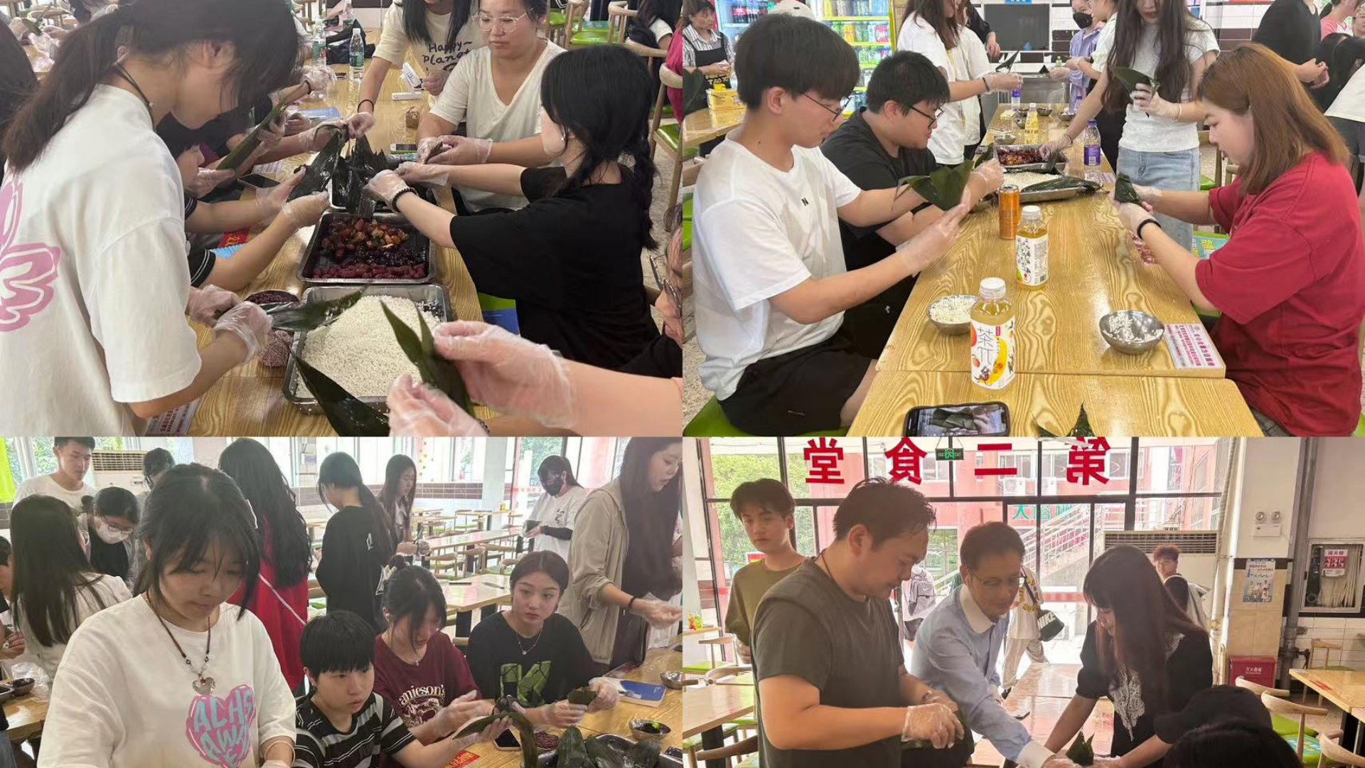 为弘扬中华优秀传统文化,让大学生更好地了解、认同和喜爱传统节日,坚定文化自信心,增强民族自豪感,在劳动实践中体会美好生活,6月15日下午,经济与管理系在学校二食堂开展“情浓端午 粽叶飘香”劳动教育主题活动,党支部书记雷杨,教师梁亮、杨捷,全系辅导员以及五十名学生到场参加。