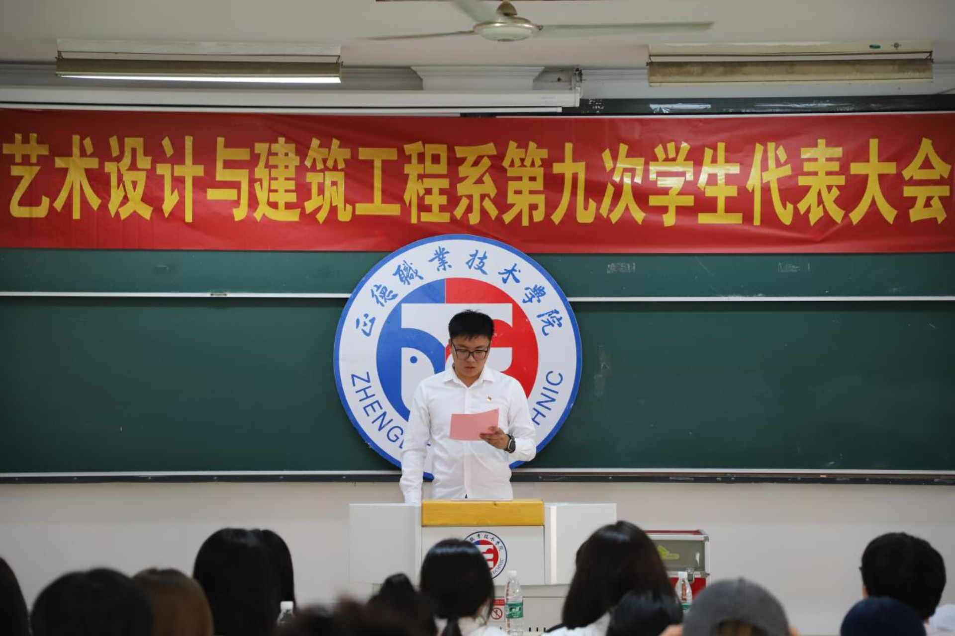 大会下半段由艺术设计与建筑工程系学生会主席周宇先进行工作汇报,然后宣读《关于艺术设计与建筑工程系第九届常任委员会工作报告决议(草案)》并且审议顺利通过。最后,大会开始选举新任的艺建系学生代表大会的常任委员会委员和新一届的艺建系主席团成员。