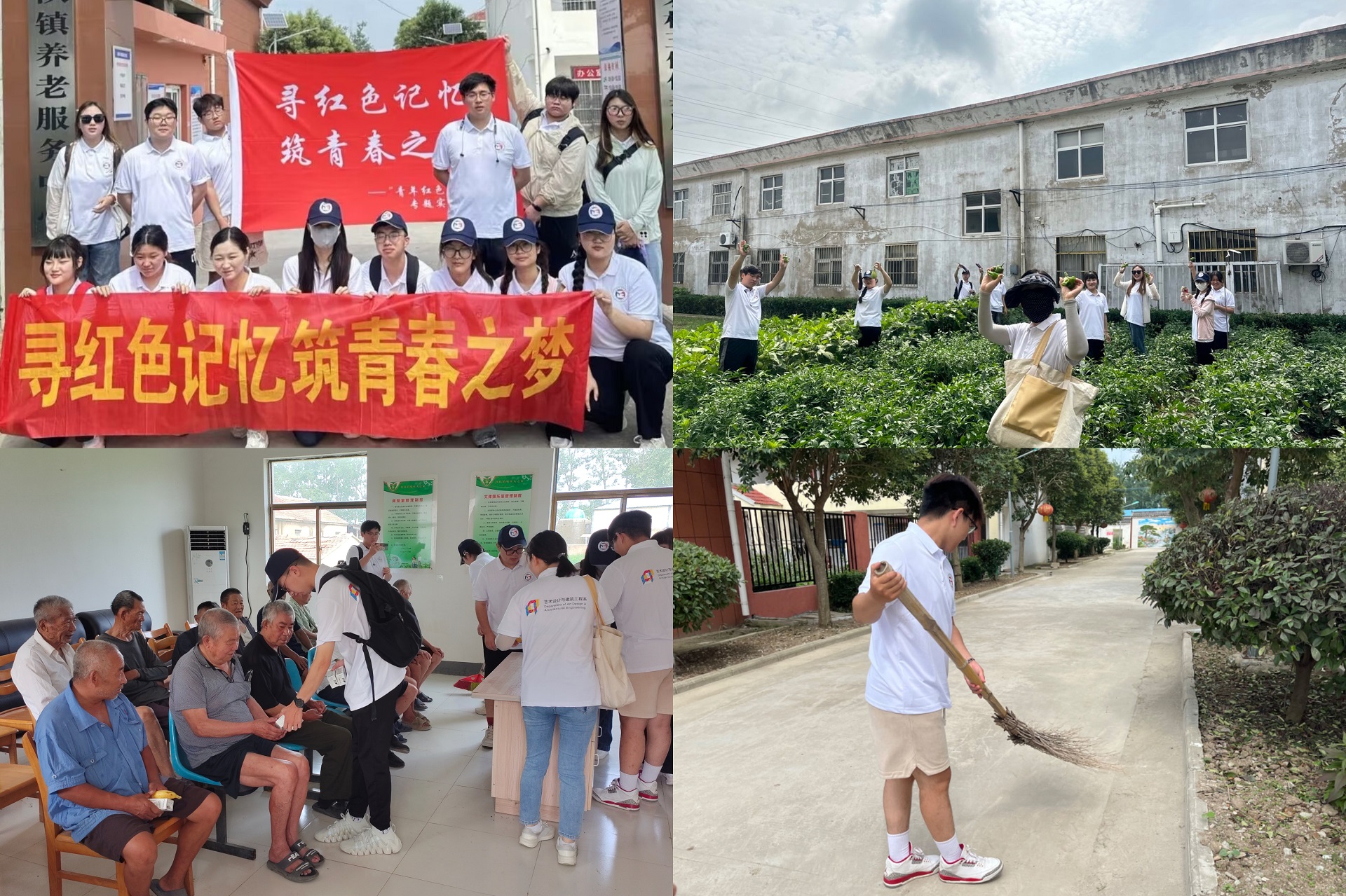倾听老党员的从军故事,聆听革命奋斗史了解四队镇的发展历史;参观王继才先进事迹展示馆,学习守岛英雄王继才的精神,用无怨无悔的坚守和付出,在平凡的岗位书写了不平凡的人生华章,他甘于奉献的精神是我们新时代奋斗者的价值追求;开展志愿服务活动,拜访四队镇农村五保供养服务中心,同学们进行了叠被子、扫地、拔草、摘菜等一系列的服务活动,让同学们深入了解了敬老院的运营管理工作和服务水平,同时也加深了对社会推动公办养老服务机构健康和可持续发展的信心;参观当地特色企业,同学们走访了家纺、新材料、新能源等多家企业,了解到了企业发展的的辛苦与不易,让同学们认识到企业对于乡村振兴发展的重要性。