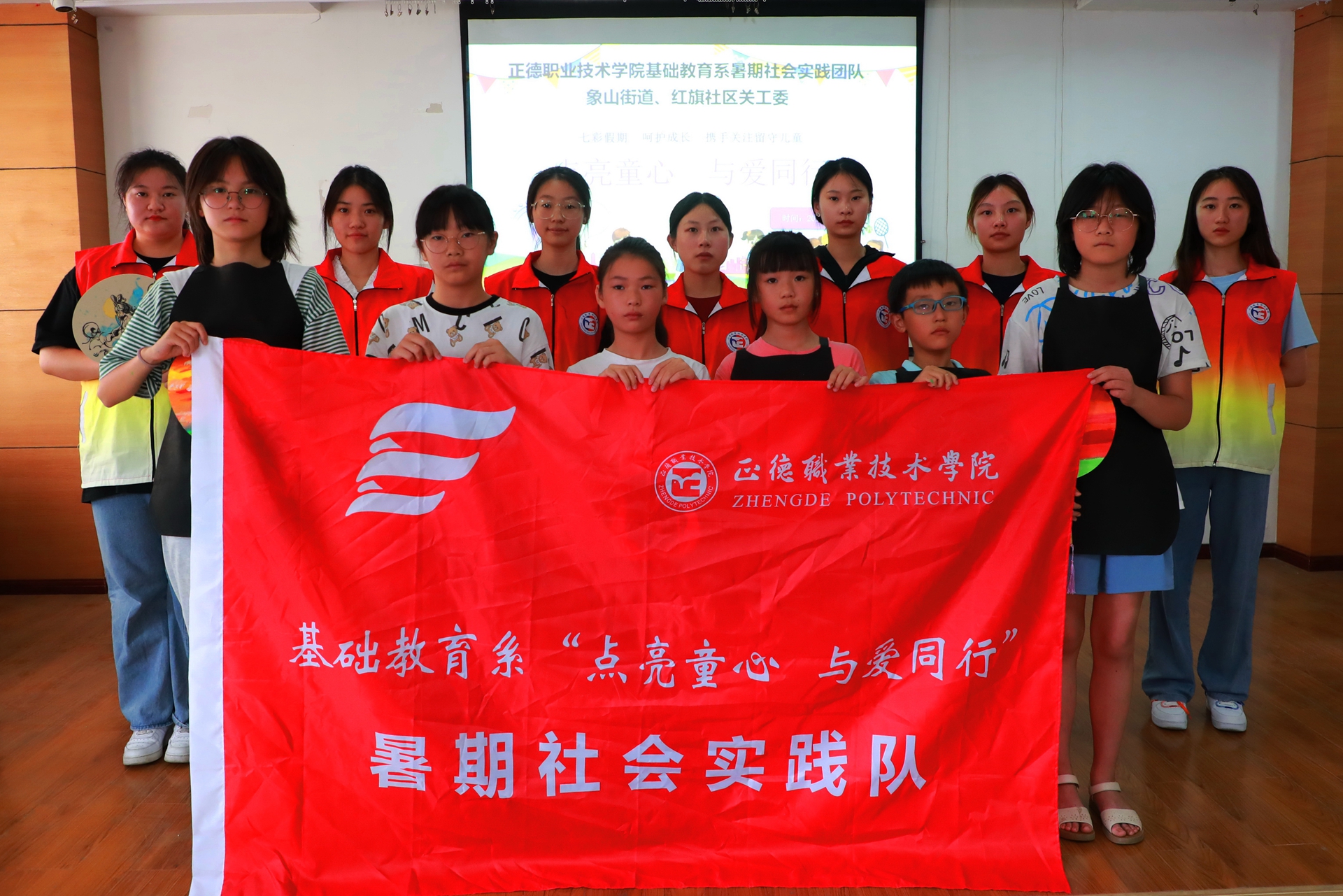 8月4日,团队来到镇江市京口区象山街道红旗社区,与象山街道关工委共同举办“大手拉小手,绘梦想筑未来”活动。象山街道关工委常务副主任姚家驹、象山街道红旗社区党委书记王海、基础教育系刘婧老师出席了本次活动。