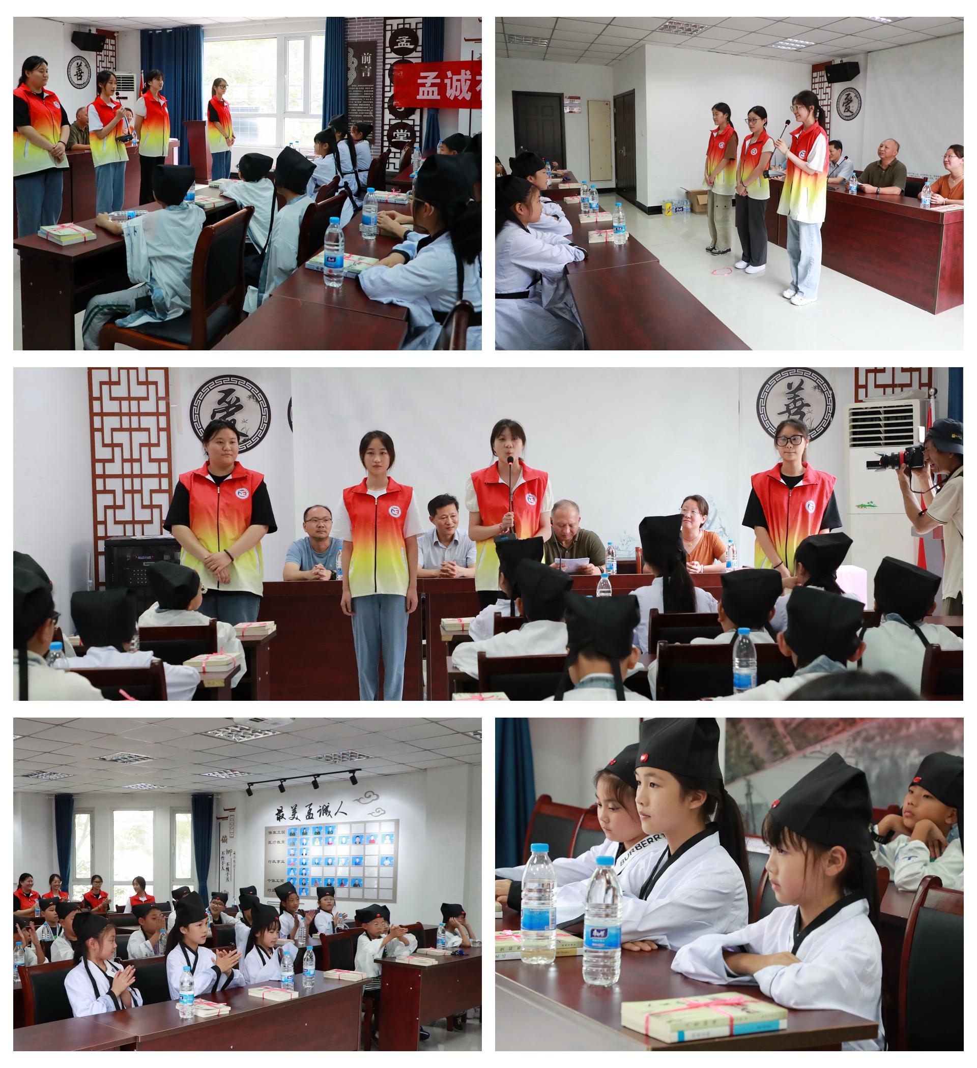 活动在孟诚社区的孟子学堂开展,社区的小朋友们穿上中华传统服饰,感受传统文化的魅力。实践队成员周颖同学,给小朋友们讲述《孟母三迁》的故事,其他成员每个人还准备了一句“孟言孟语”送给小朋友,希望他们可以明白其中的道理。
