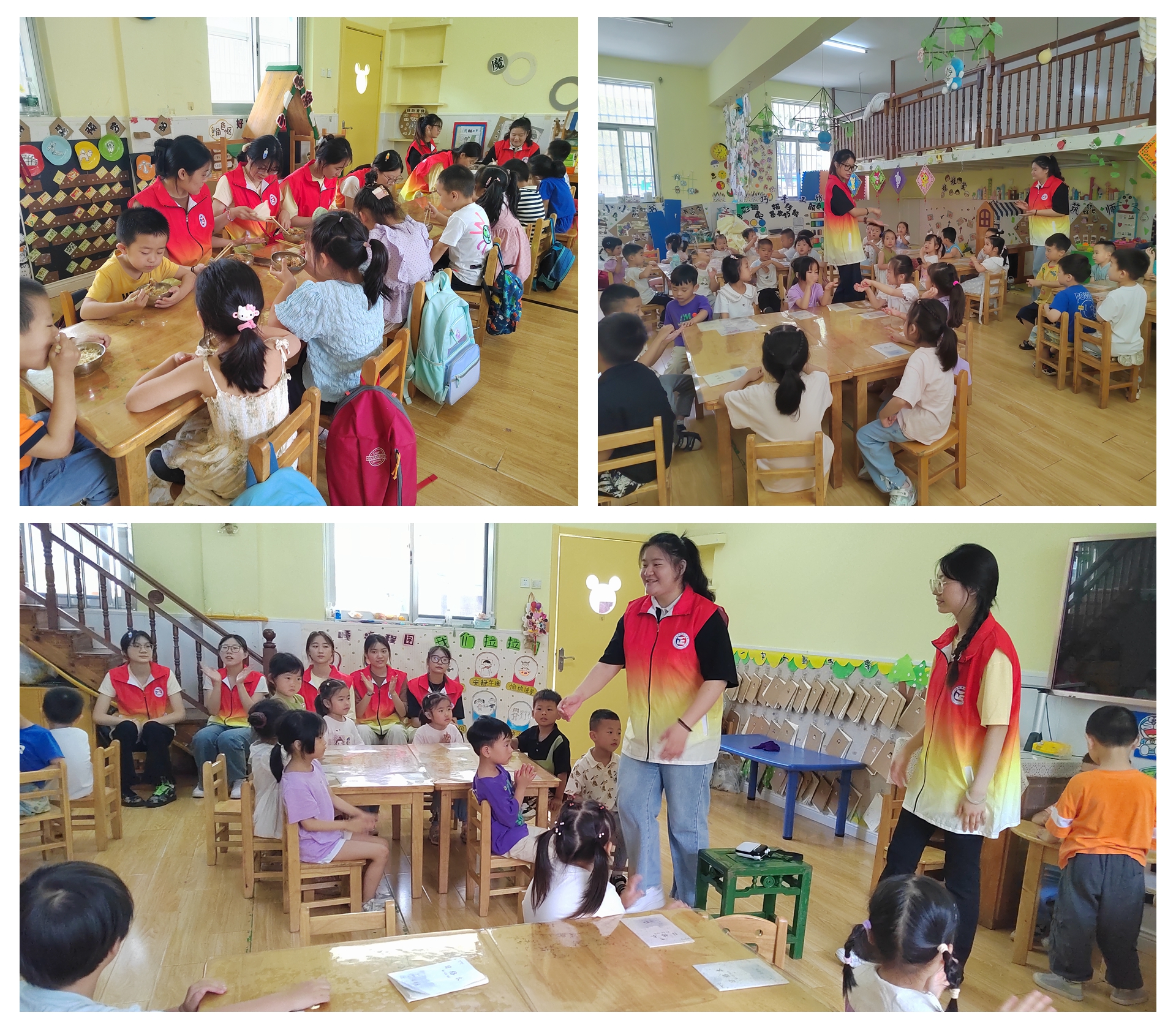 团队成员们在幼儿园通过手工制作等系列保教实践活动,把专业理论和实践学习相结合,发挥自身特长,用爱心、细心、责任心的职业态度,展现优秀学前人的职业素养。