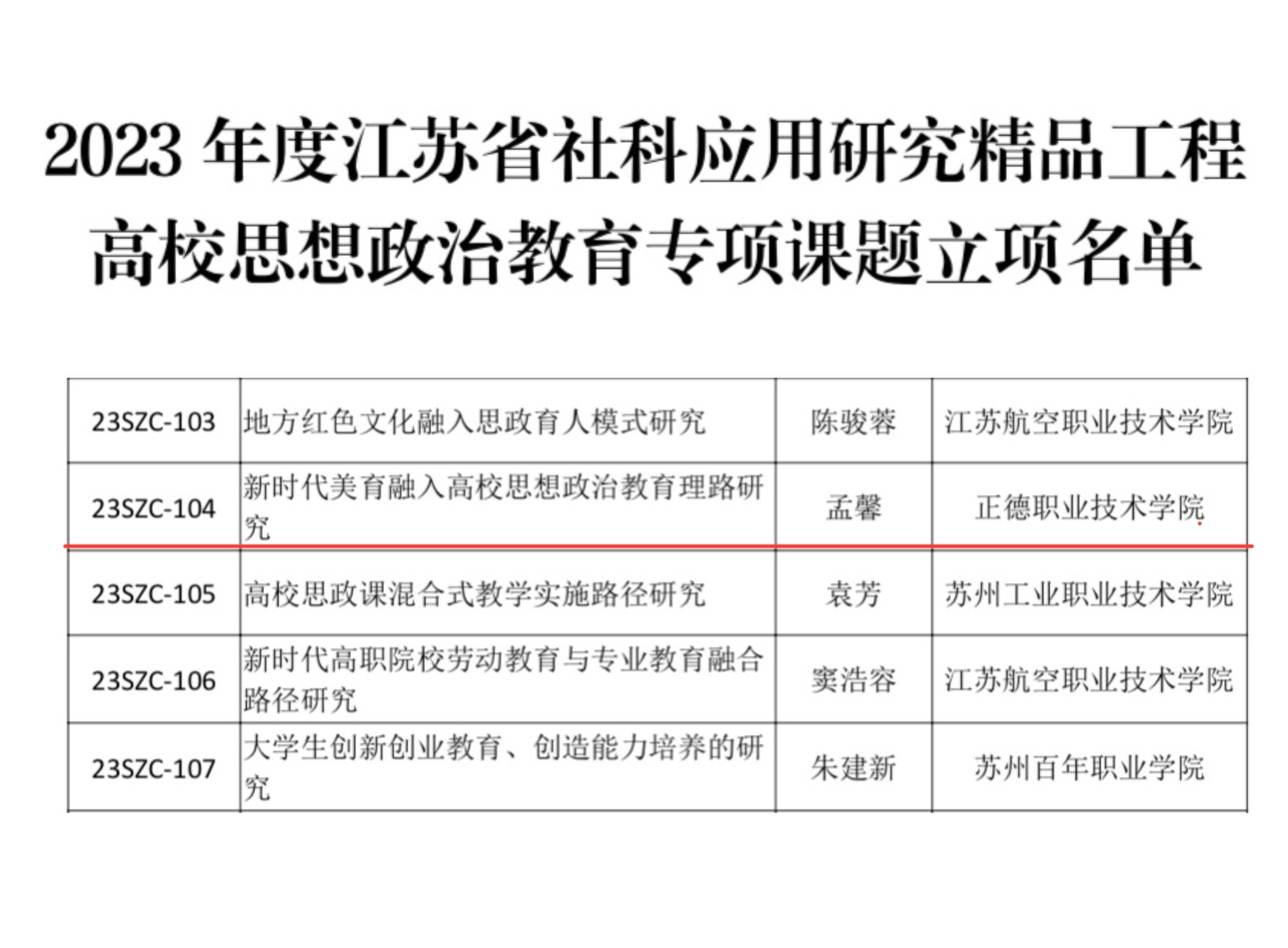近日,江苏省哲学社会科学界联合会公布了2023年度江苏省社科应用精品工程思想政治教育专项课题立项名单,av在线 基础教育系教师孟馨主持申报的《新时代美育融入高校思想政治教育理路研究》获批立项。该课题以“美育课程”为着力点,致力于在课程教学中不断提高学生的审美与人文修养,为推进学院美育教育与实践高质量发展积极贡献力量。