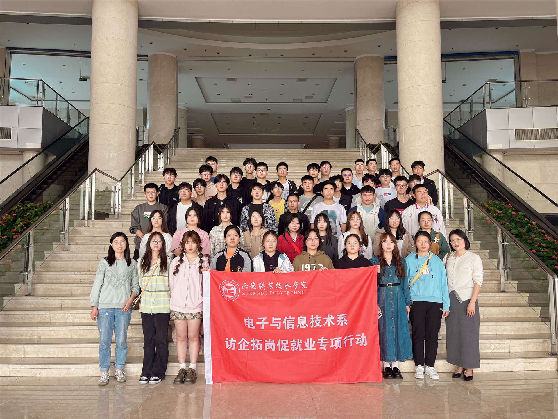 为引导学生提前认识专业岗位,了解行业发展前景,结合《专业导论课》课程需求,10月12日,电子与信息技术系专业教师白延敏、王晓艳和辅导员付磊带领2023级大一电子专业新生,赴中国电子科技集团公司第十四研究所(以下简称中电十四所)开展企业参观、交流学习。