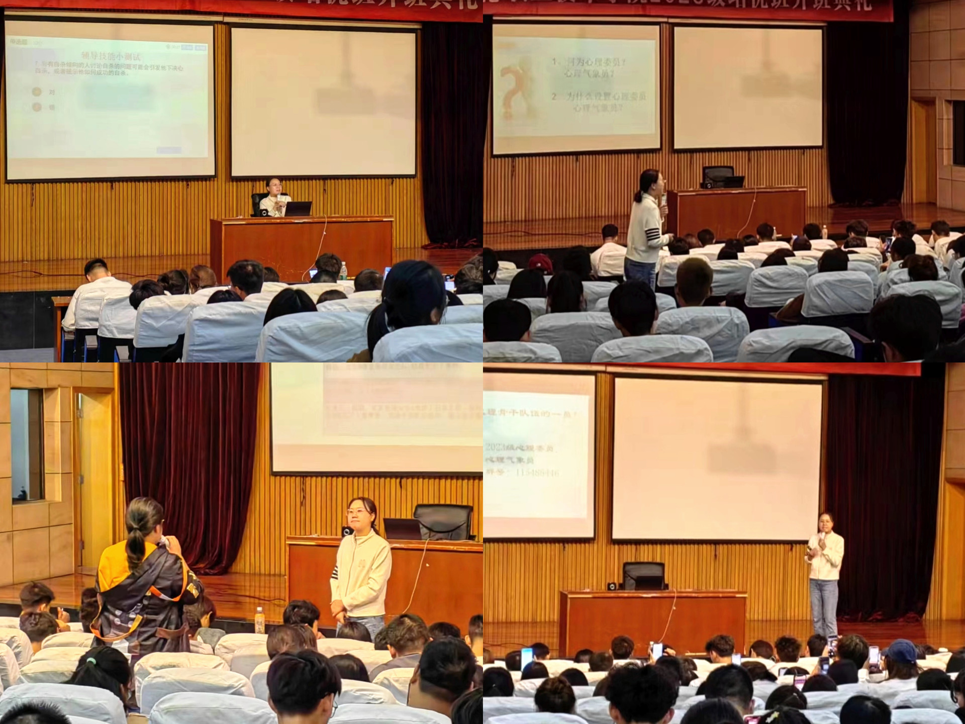本次培训樊老师主要从“何为心理危机”“大学生常见的心理危机”“如何干预与预防”及“作为心理委员和气象员我们能做哪些等方面”,四个部分带领全体心理骨干们做了学习。最后,樊老师带着学生进行案例实操演练,提升了同学们对危机干预技能的理解和运用。培训过程中,同学们认真聆听、主动提问,本次培训会在同学们热烈的掌声中圆满结束。