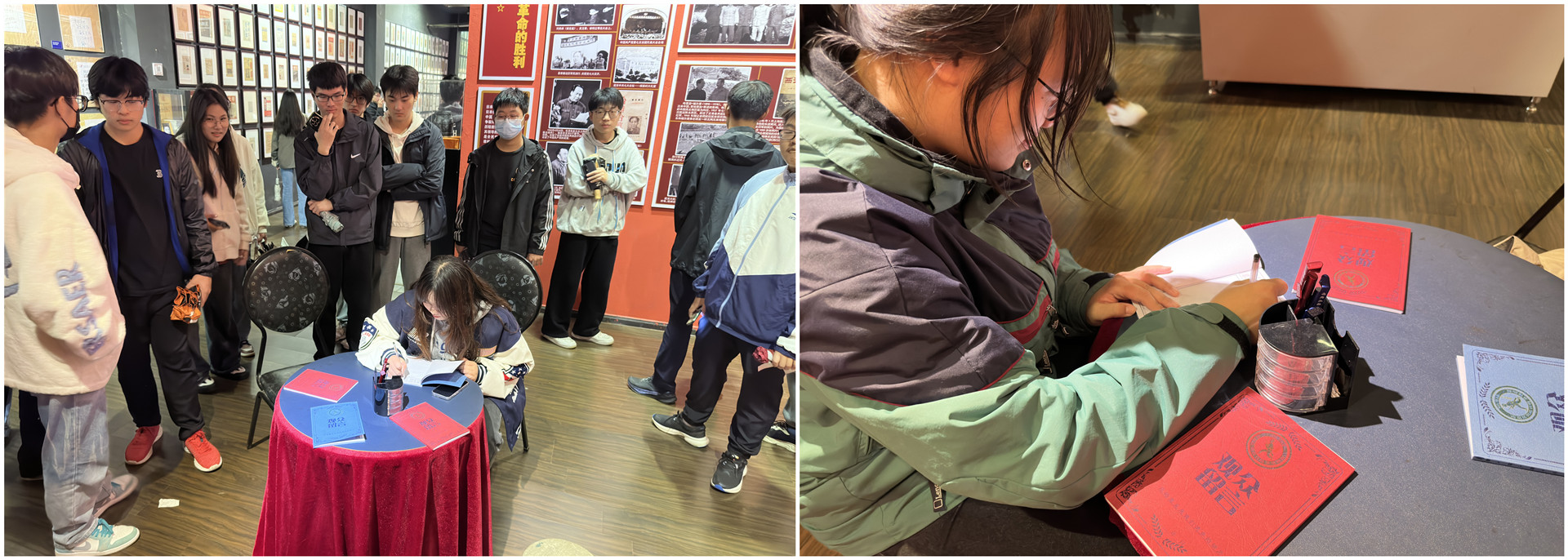 随后学生们在南京民间抗日战争博物馆的留言本上写下内心感悟。走过每一件史料,抗战烈士的英姿仿佛就在眼前,浓浓的自豪感和使命感在心中升腾。