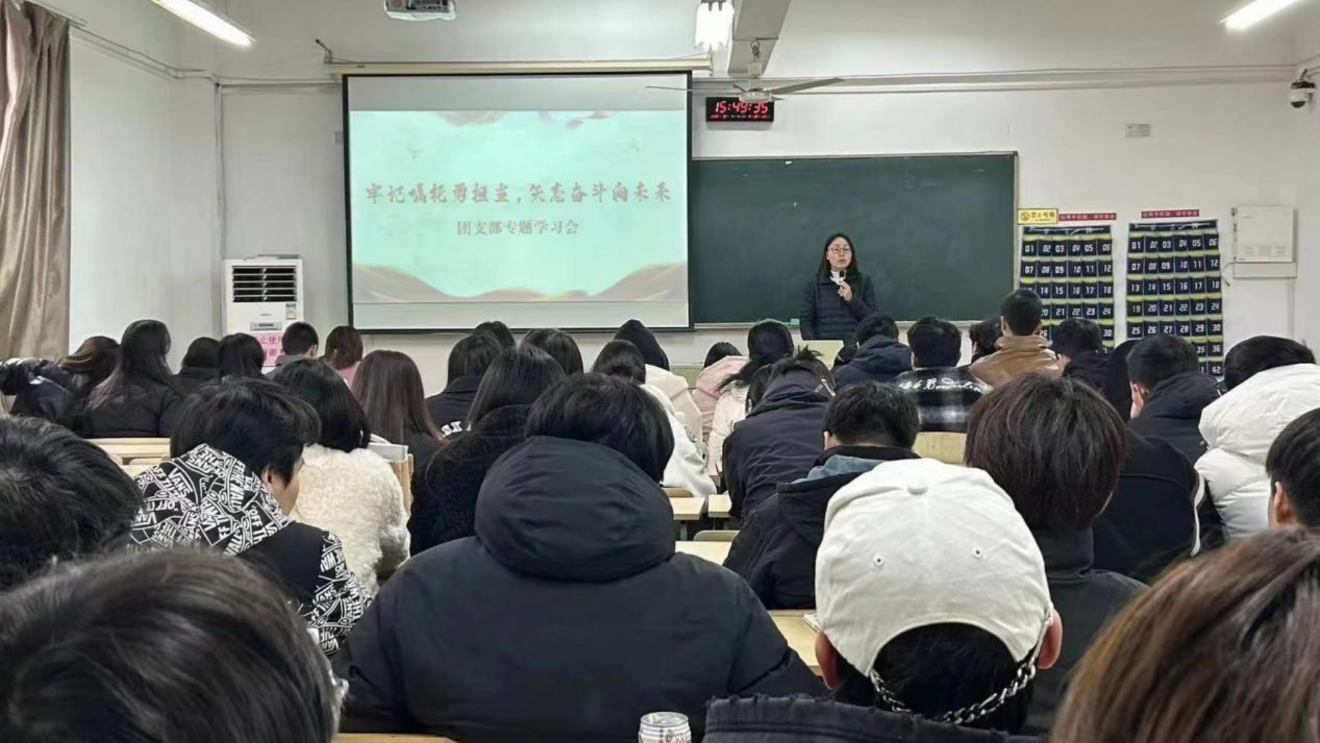 最后,在辅导员的指导下,各团支部书记在会议室、教室、一站式社区党团活动室等地引领全体团员青年学习相关内容。本次主题团日活动的开展,进一步坚定了全系团员青年的理想信念,引领全系团员青年坚定信心、鼓足干劲、振奋精神,踔厉奋发。