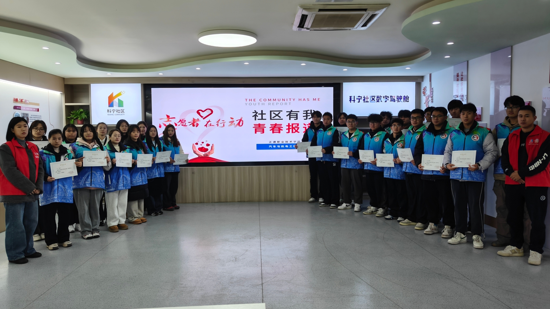 社区负责人祝贺汽车与机电工程系与科宁社区合作的“青宁计划”在2023年江宁区双百共建工程中评选为“优秀共建项目”,对2023年度社区志愿者开展的志愿服务活动进行了回顾和总结,对在惠民服务、社区治理等各项志愿服务工作中表现突出的志愿者表示感谢,希望他们再接再厉,继续弘扬志愿精神,创新开展新时代文明实践活动,不断营造志愿服务良好氛围,凝聚更大的力量。汽车与机电工程系的青年志愿者们脚踏实地,坚持不懈,在志愿服务的道路上留下了一个又一个脚步,他们在这条道路上成长,用热血与温情传递善意,在各自的岗位上尽其职,在校园内外的志愿活动中倾其能。
