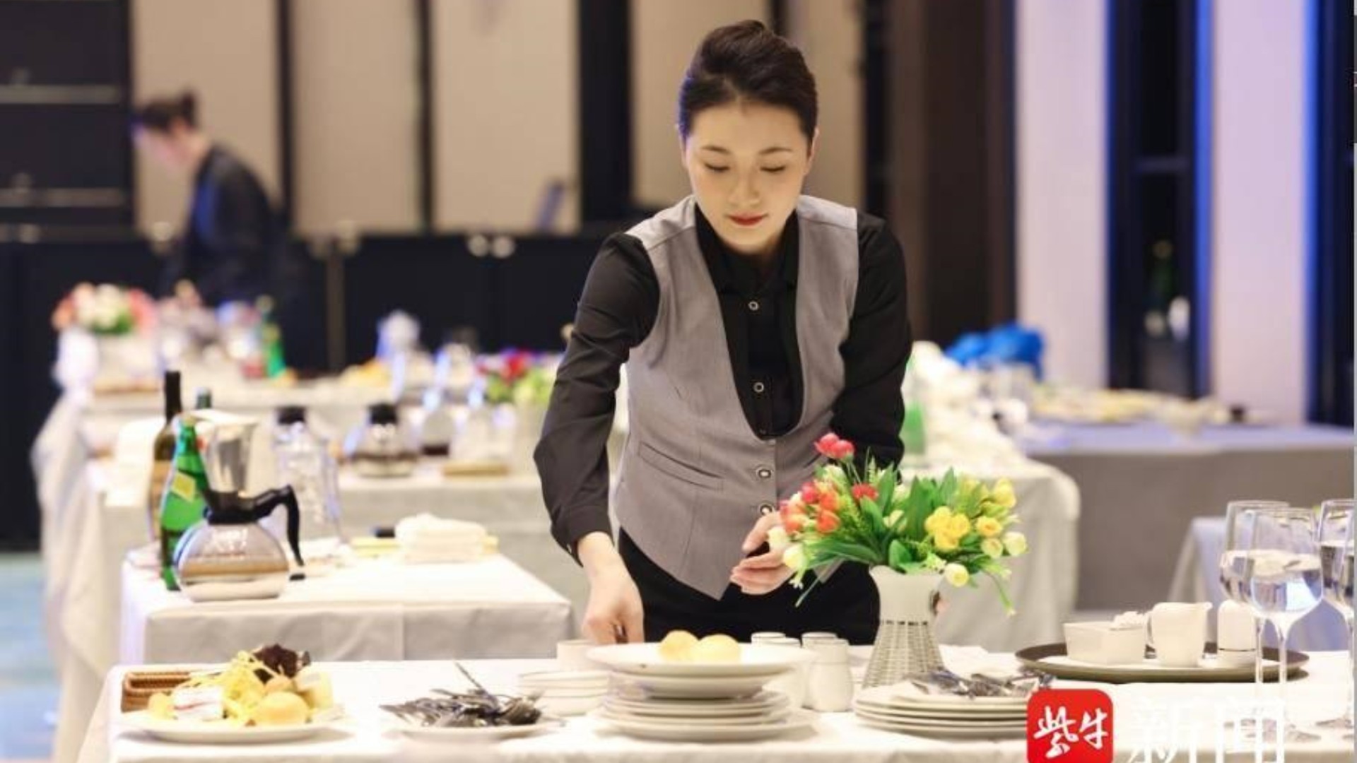 “酒店服务”赛项共分前厅接待、中餐服务、西餐服务三个模块。其中前厅接待为入住登记、退房离店、投诉或突发事件处理三大内容;中餐服务为主题宴会设计、宴会服务两大内容;西餐服务为休闲餐厅服务内容,充分考查酒店管理与数字化运营专业学生的核心技能和相关岗位职业素养。最终,av在线 选手凭借扎实的基本功、出色的现场表现完成了赛项各项任务,赢得了评委们的认可。