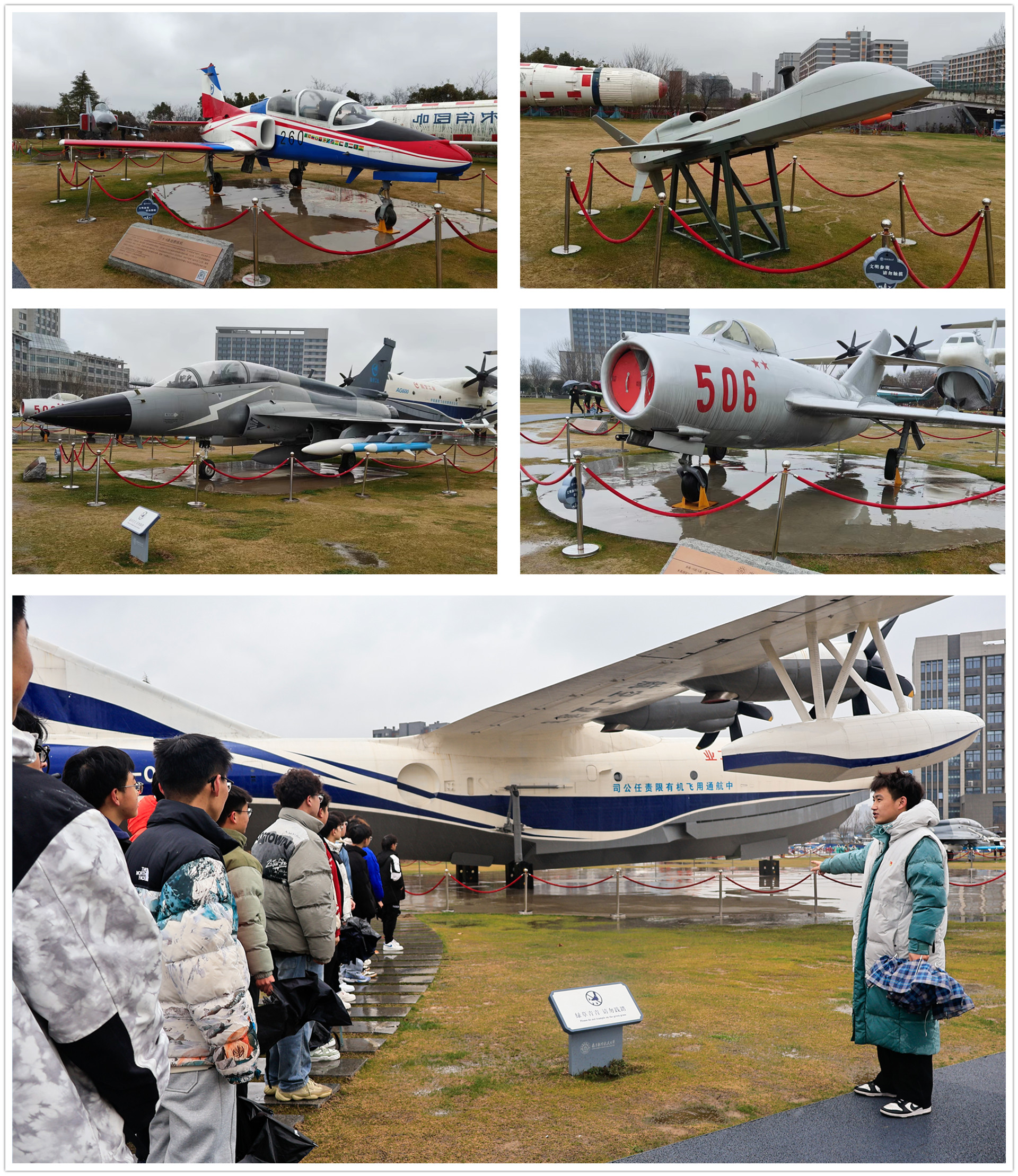南京航空航天大学“御风园”航空航天教育教学实践基地是南航打造的一个集教学、实践、科普为一体的综合性基地。在这次参观过程中,付磊老师带领同学们深入了解AG600“鲲龙”大型水陆两栖飞机、FC-1“枭龙”战斗机、歼-8Ⅱ歼击机、长征四号运载火箭、FY1中程高速无人机系统等一大批大国重器的发展历程,给同学们带来一节“航空报国、献身国防”的微党课,他鼓励学生增强实践能力、汲取创新精神,把爱国的种子根植于学生心灵。