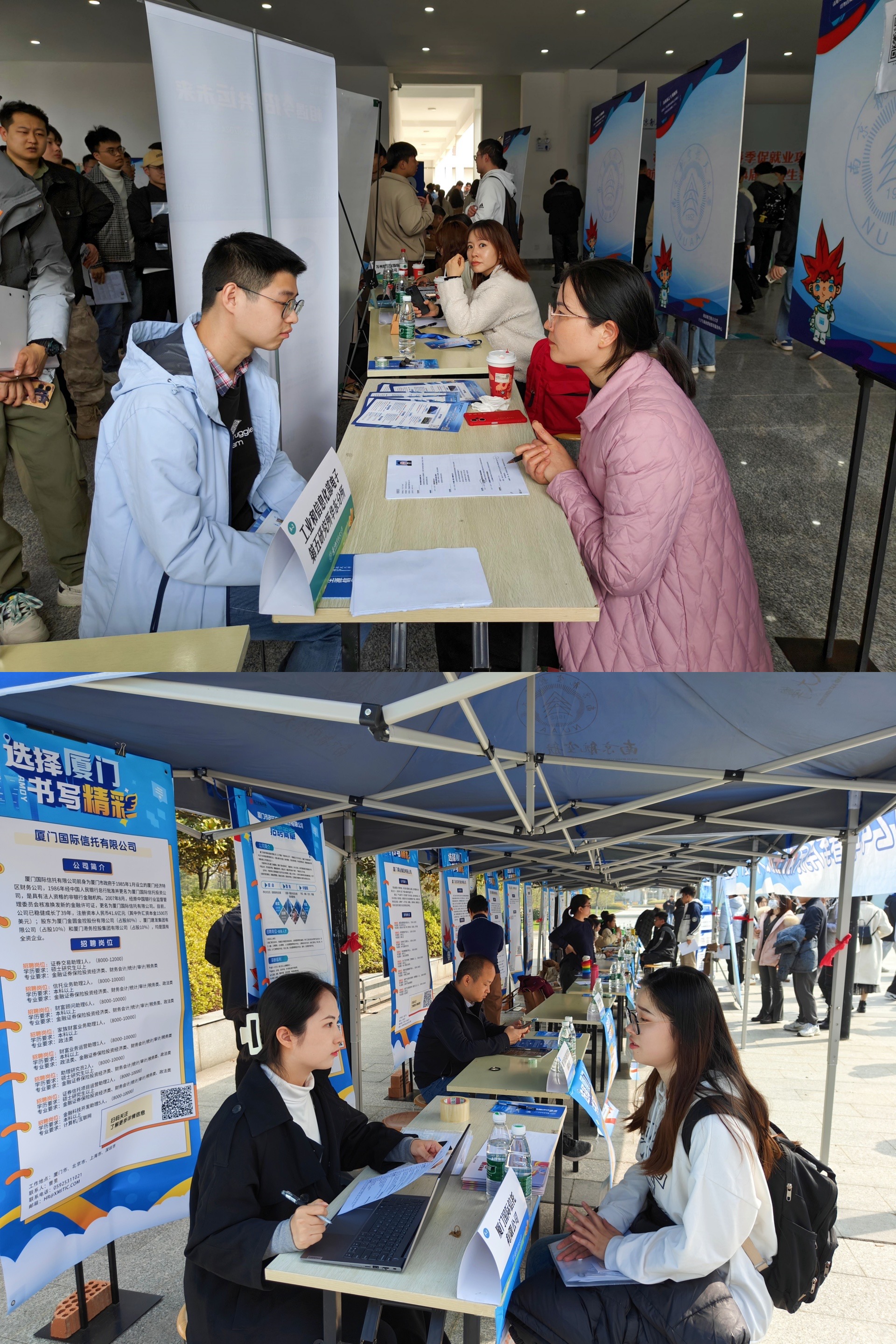3月15日,南京航空航天大学在将军路校区西区体育中心举行“春季促就业攻坚行动暨南京航空航天大学2024届毕业生春季大型专场招聘会”,本次招聘会共邀请468家用人单位赴现场揽才,同时邀请了南通、厦门、苏州、合肥、镇江、自贡等6个地区政府、人社部门组织优质企业组团参会。