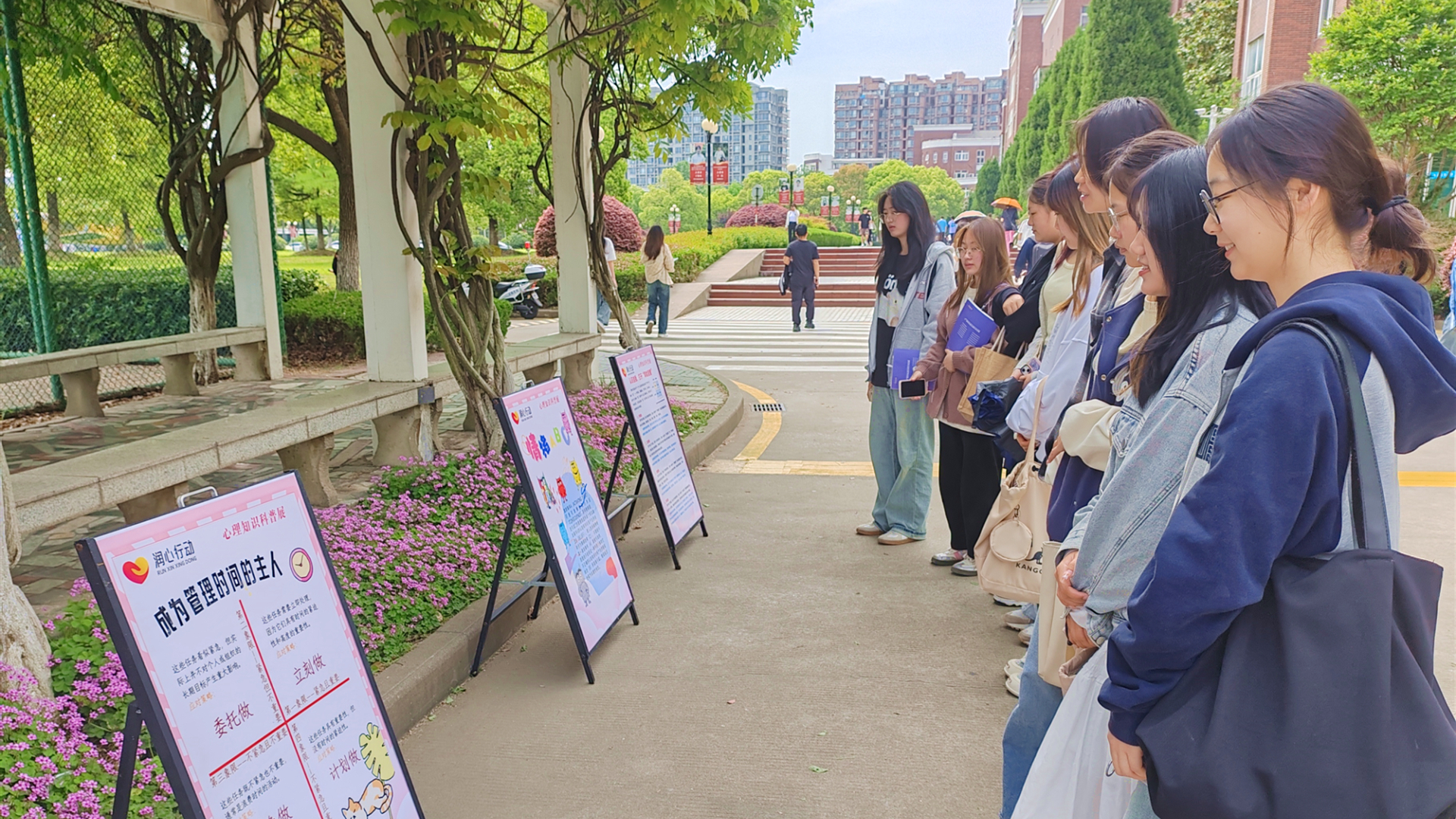 为提升全院师生的心理健康意识,促进心理健康教育的普及。av在线 学生处大学生心理健康教育中心于4月25日下午在紫藤长廊举行了“五育润心 沐光前行” 心理健康知识科普展活动。