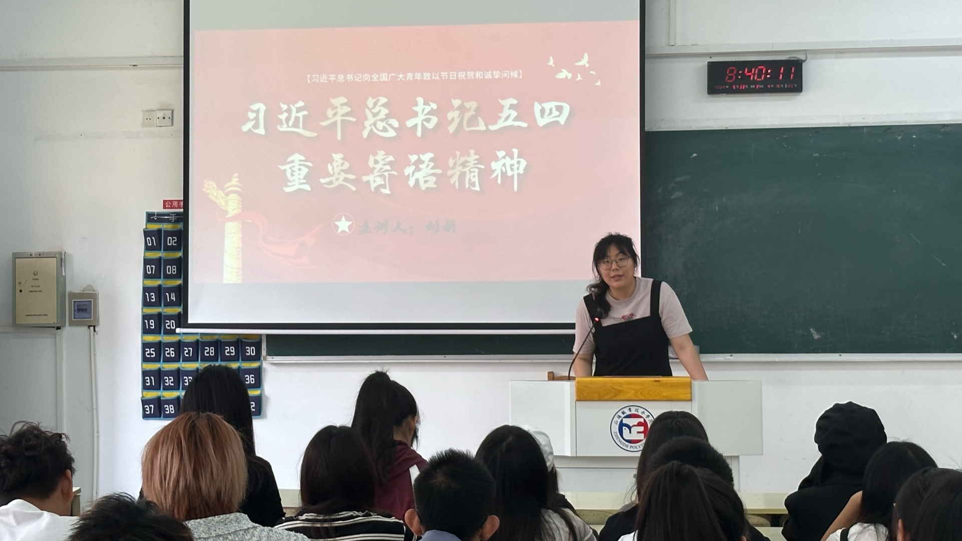 在系列活动的首场专题学习中,系团总支书记刘妍受邀来到2204教室,带领223302班全体同学认真学习了五四青年节前夕习近平总书记发表的重要寄语,肯定了大家学习的积极性,希望同学们结合个人实际领会习近平总书记重要寄语精神,强调了青年学生在新时代肩负的历史使命和责任担当,鼓励同学们要坚定不移听党话,跟党走,争做有理想、敢担当、能吃苦、肯奋斗的新时代好青年,以实际行动践行青春誓言、贡献青春力量。
