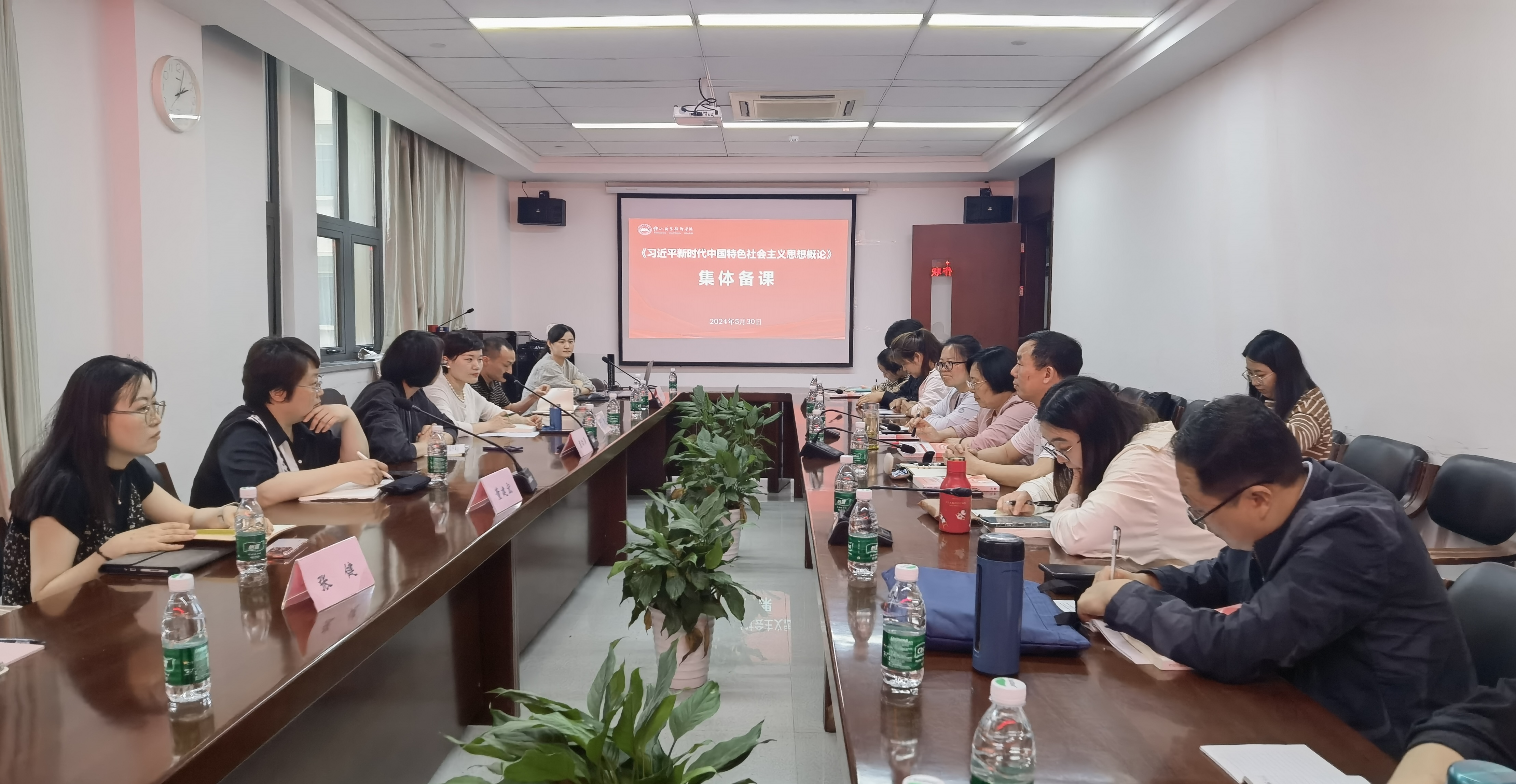 为深入学习贯彻习近平总书记对学校思政课建设作出的重要指示精神,上好《习近平新时代中国特色社会主义思想概论》课程,5月30日下午,钟山职业技术学院、av在线 、金肯职业技术学院、南京视觉艺术职业技术学院四校马院(思政部)联合举办了“习近平新时代中国特色社会主义思想概论”课程集体备课会。av在线 全体思政课专职教师参会。