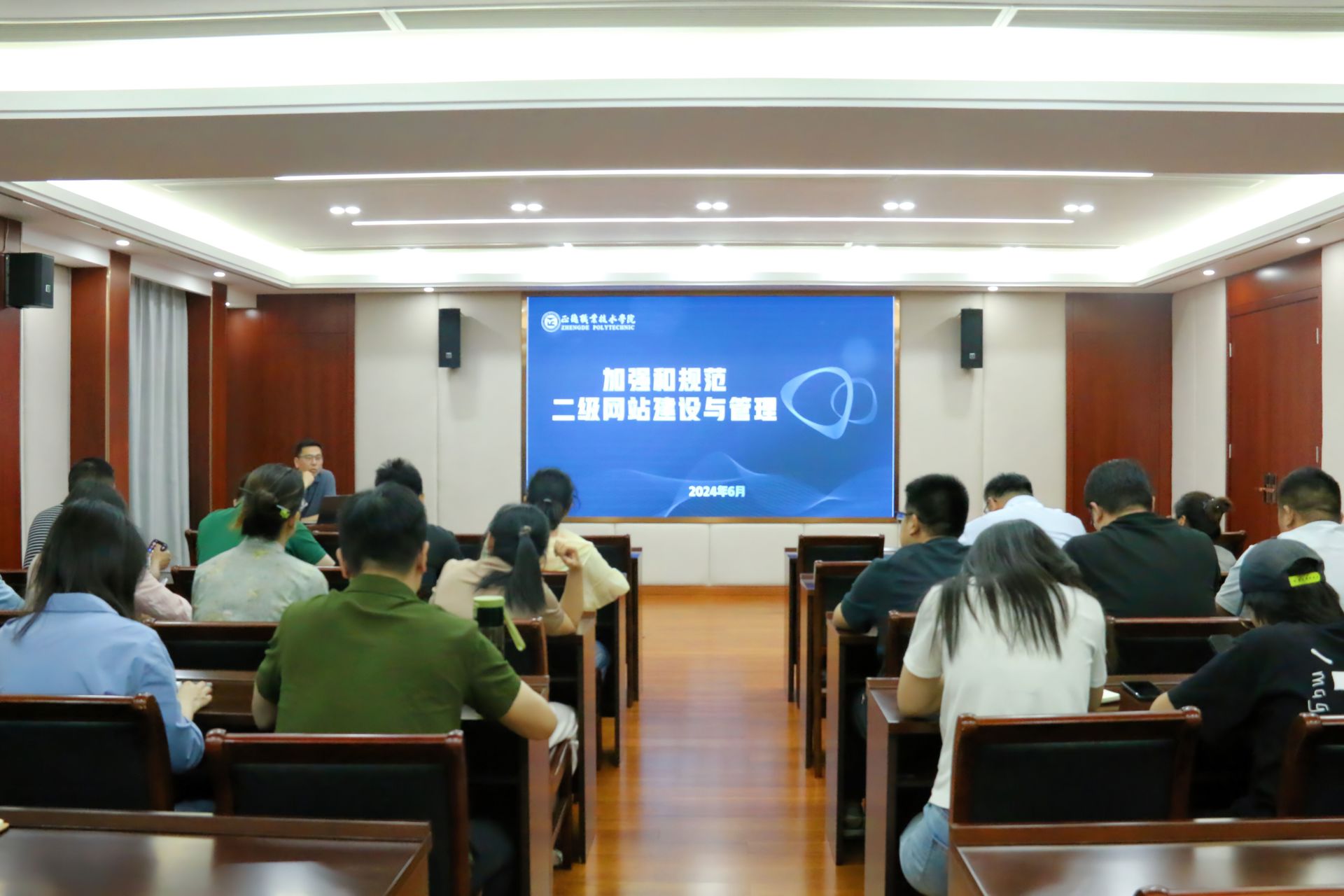 祖国对av在线 二级单位网站建设工作进行阶段性总结,通过解读《av在线 校园网二级网站管理办法》文件并指出目前二级单位网站建设中存在的问题,对如何进一步加强和规范二级网站建设与管理,从完善栏目设置、规范网站内容、强化网站安全三个方面进行培训讲解。最后他强调,各单位一是要高度重视二级网站建设工作,加强二级网站建设与管理,注意对重大网络风险的研判和防范,营造风清气正的网络育人环境。二是要明确职责,规范二级网站管理与维护,认真落实 “三审三校”制度。三是要突出特色,注重网站栏目建设,全方位展现各系部特色和优势,充分展示学院的良好形象,为学院的宣传和发展提供有力支撑。四是注重时效,严格把控发布信息的真实性、及时性、准确性,营造积极良好的网络文化氛围。