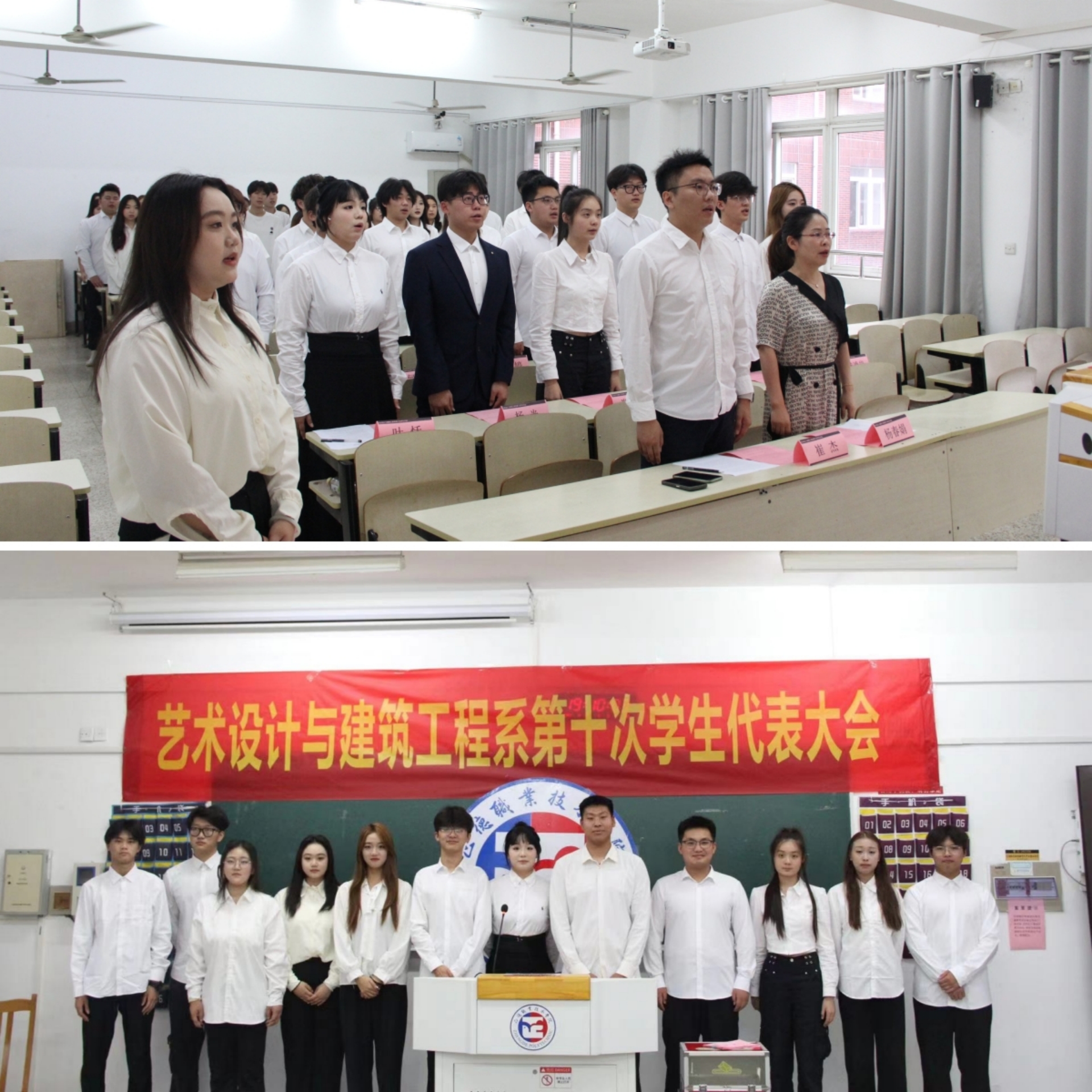 2024年6月18日,艺术设计与建筑工程系学生会在8303教室召开艺术设计与建筑工程系第十次学生代表大会。艺术设计与建筑工程系党支部书记杨春娟、团总支书记崔杰出席会议并讲话。