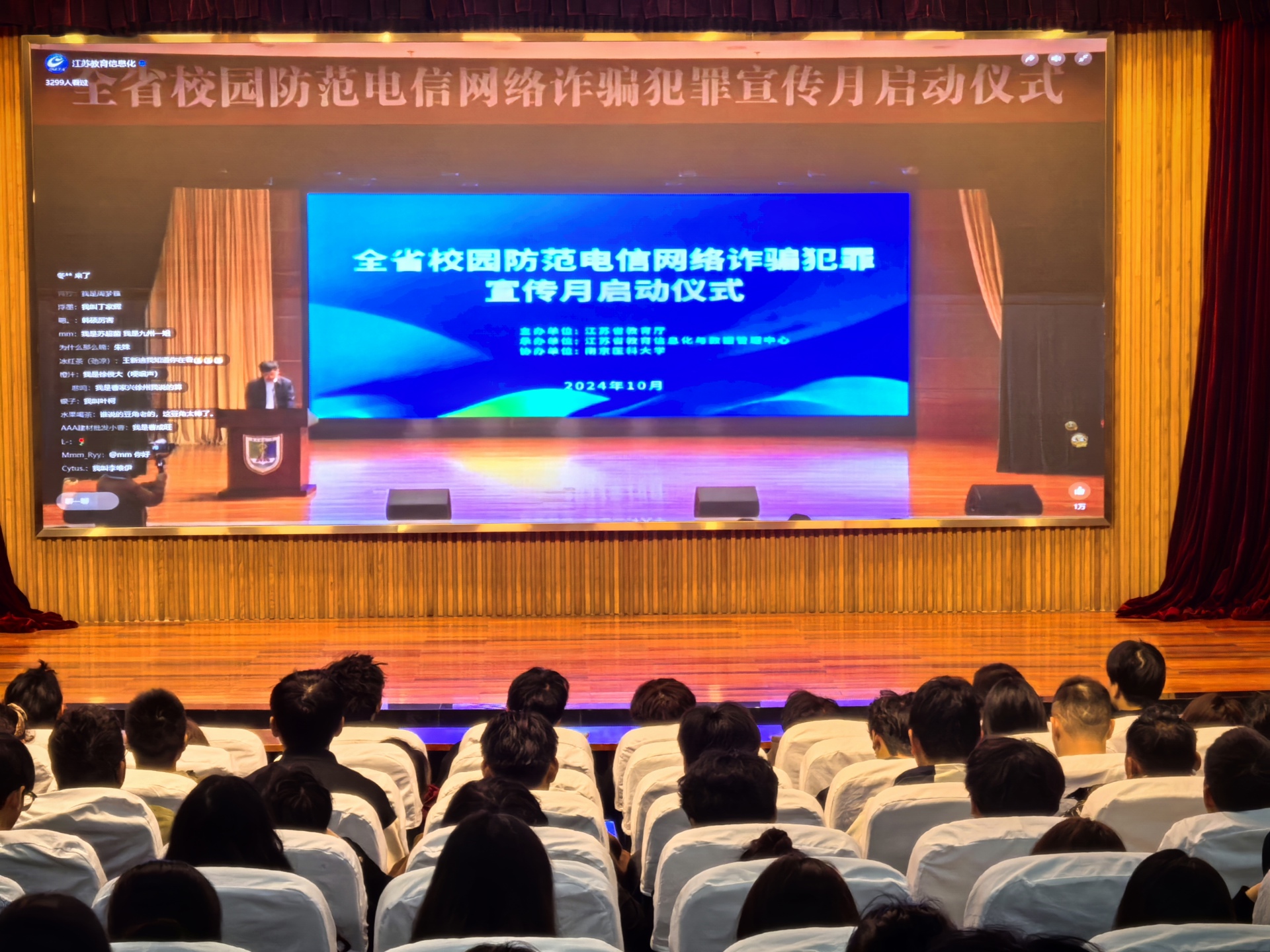 为加强校园防范电信网络诈骗犯罪宣传,增强广大师生防范意识,引导大家树立正确的网络安全观,提高自我保护能力。10月24日上午av在线 组织学生代表在报告厅参加线上江苏省校园防范电信网络诈骗犯罪宣传月启动仪式。