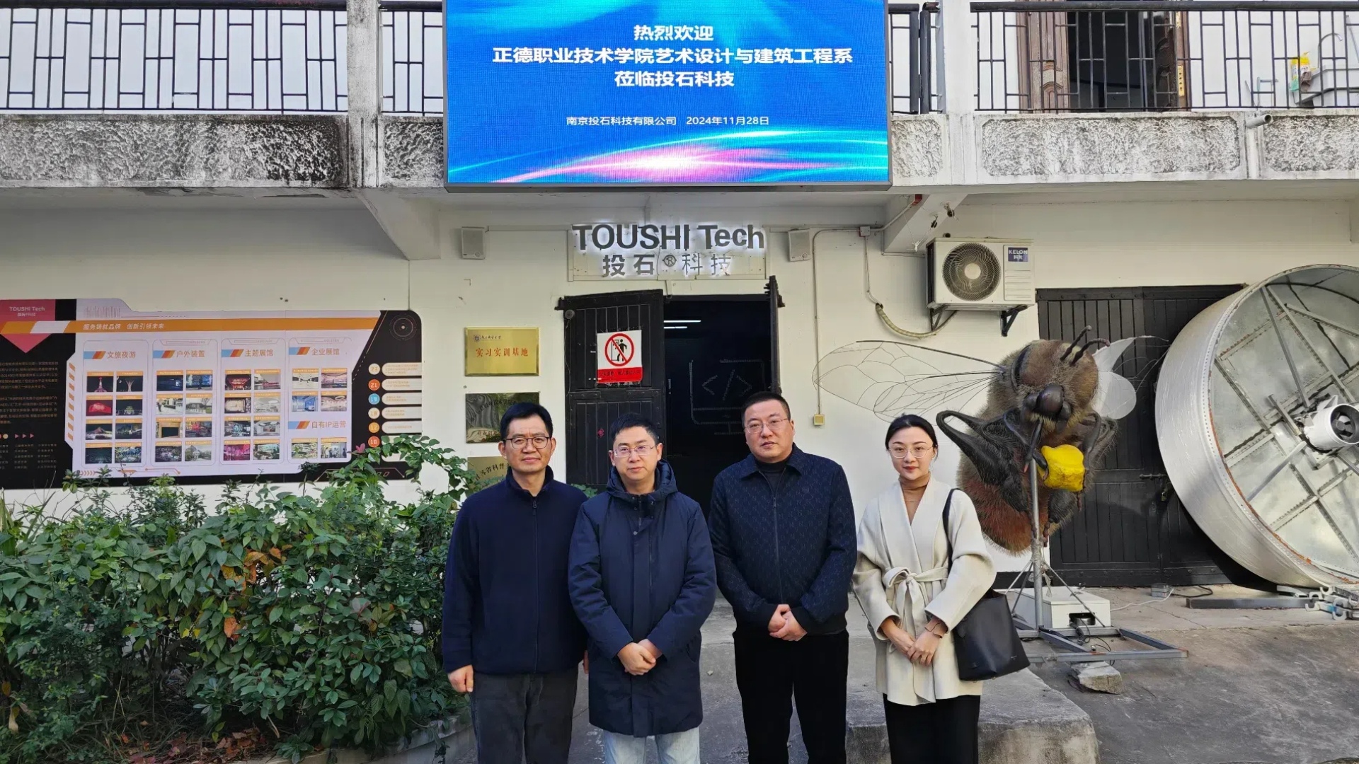 为深化校企合作,提升人才培养质量,11月28日,艺术设计与建筑工程系由系主任周卫带队,副主任陆松及专业教师王陶一同前往南京投石科技有限公司开展访企拓岗交流活动。