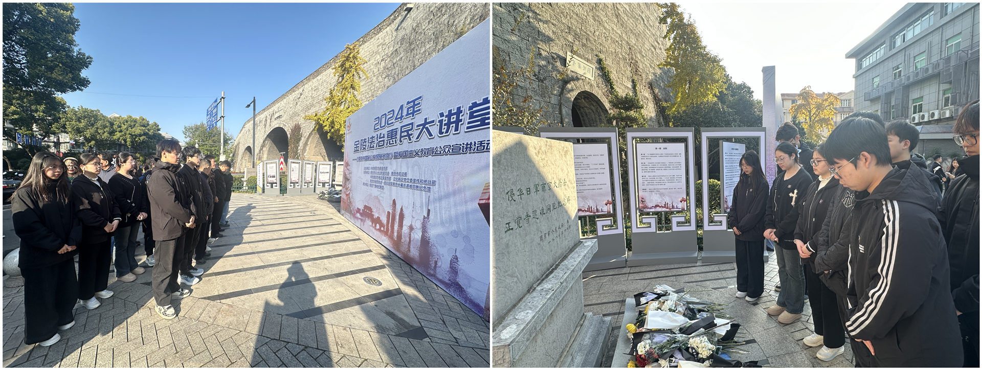 活动现场,学生代表按照主办方的要求,整齐地站在活动展板前,聚精会神地聆听南京市律师协会代表律师的宣讲。在聆听中,学生们深刻感受到了国家公祭日、维护国家尊严和民族记忆的必要性。宣讲结束后,大家前往侵华日军南京大屠杀正觉寺遇难同胞纪念碑前低头默哀,表达对遇难同胞的深切哀悼和对历史的深刻反思。