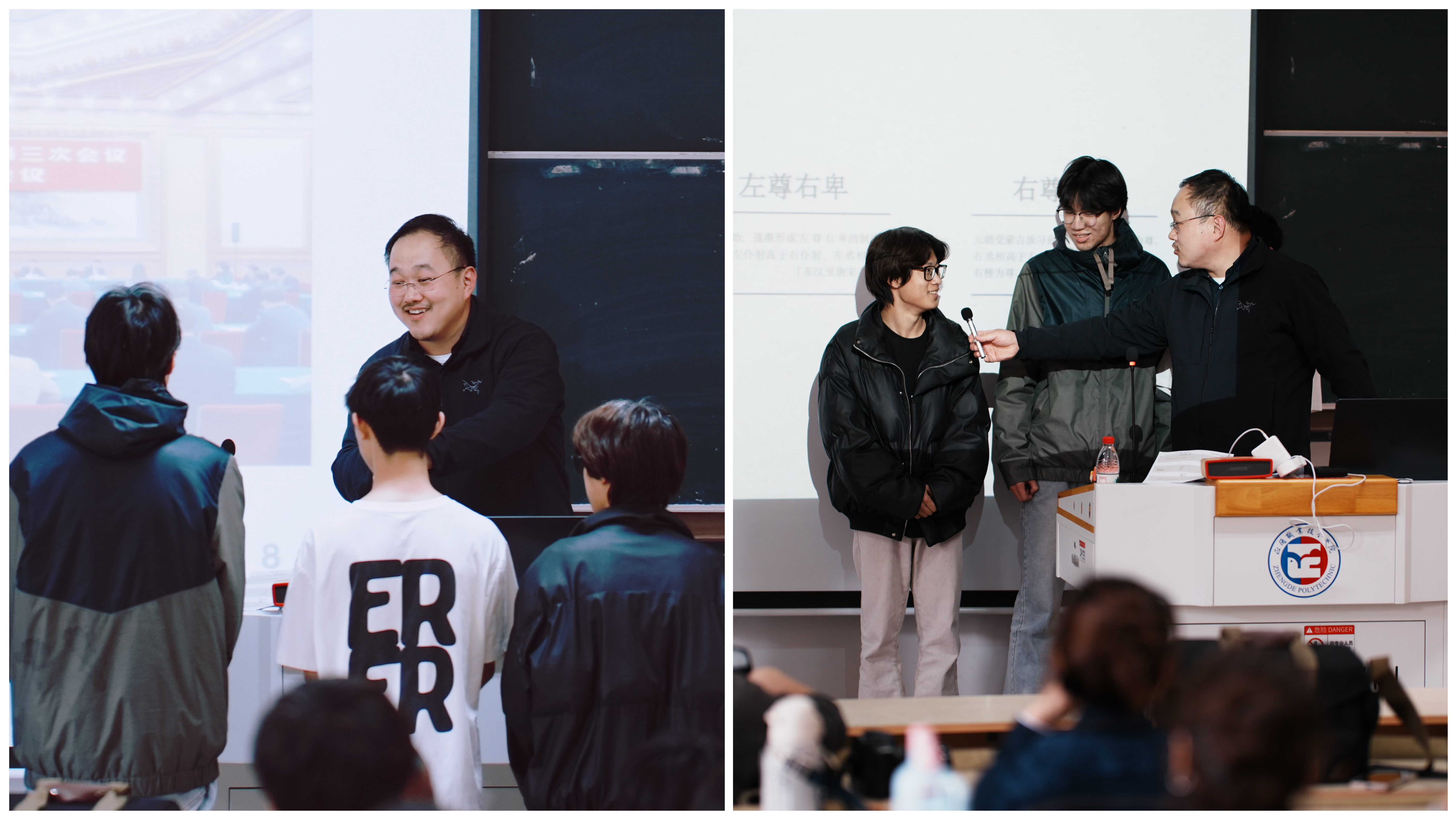 互动环节将讲座氛围推向高潮。同学们踊跃提问,针对如何更好地将重大主题与专业比赛作品融合,以及如何将专业知识与传媒行业就业实际相结合等困惑,与张正展开深入探讨。张正耐心解答,结合自身的从业经验给出了切实可行的建议,现场气氛热烈非凡。