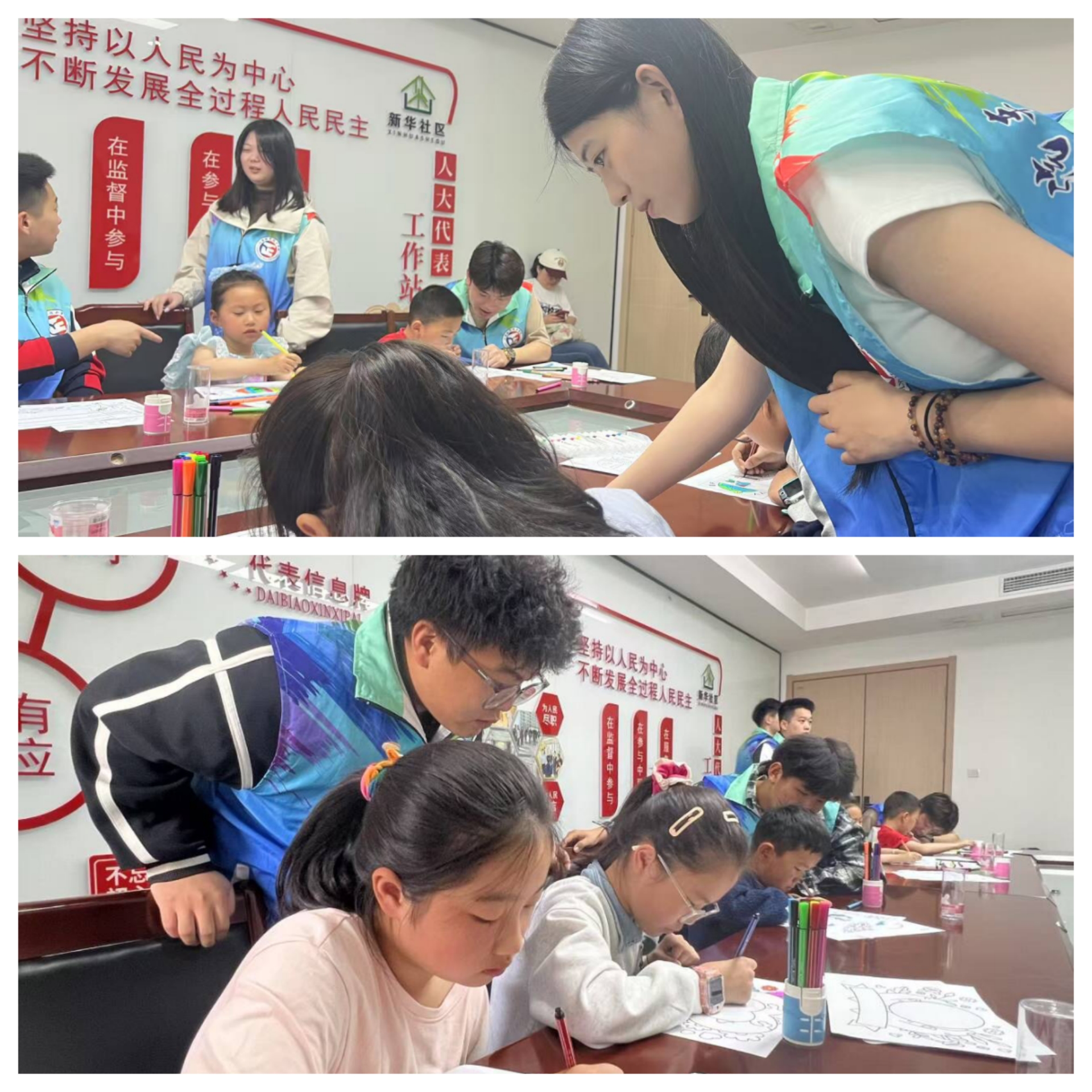4月23日,汽车与机电工程系的志愿者们走进新华社区开展“垃圾分类,童心同行”志愿服务活动。通过趣味绘画、互动游戏等形式,与小朋友们共同描绘绿色家园。