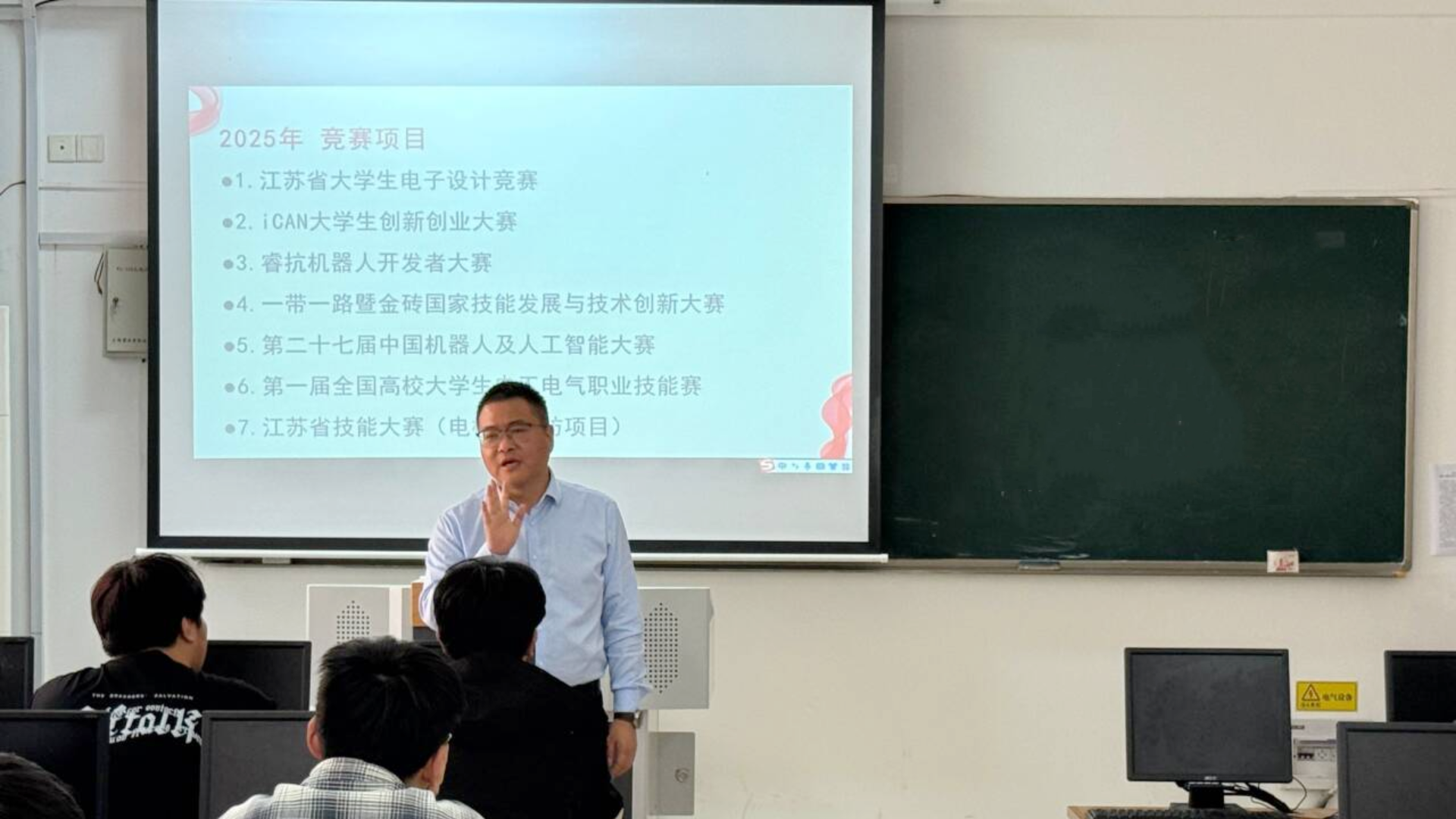为深化产教融合,培养学生的创新意识和创新能力,4月25日,汽车与机电工程系在7205教室开展2025年省级技能竞赛赛前动员会。会议由赛事团队负责人王磊主持,系主任任丽君、专业教师曾繁明以及2024级电气自动化技术、机电一体化技术、工业机器人技术专业40余名学子参加,共绘技能成长蓝图。