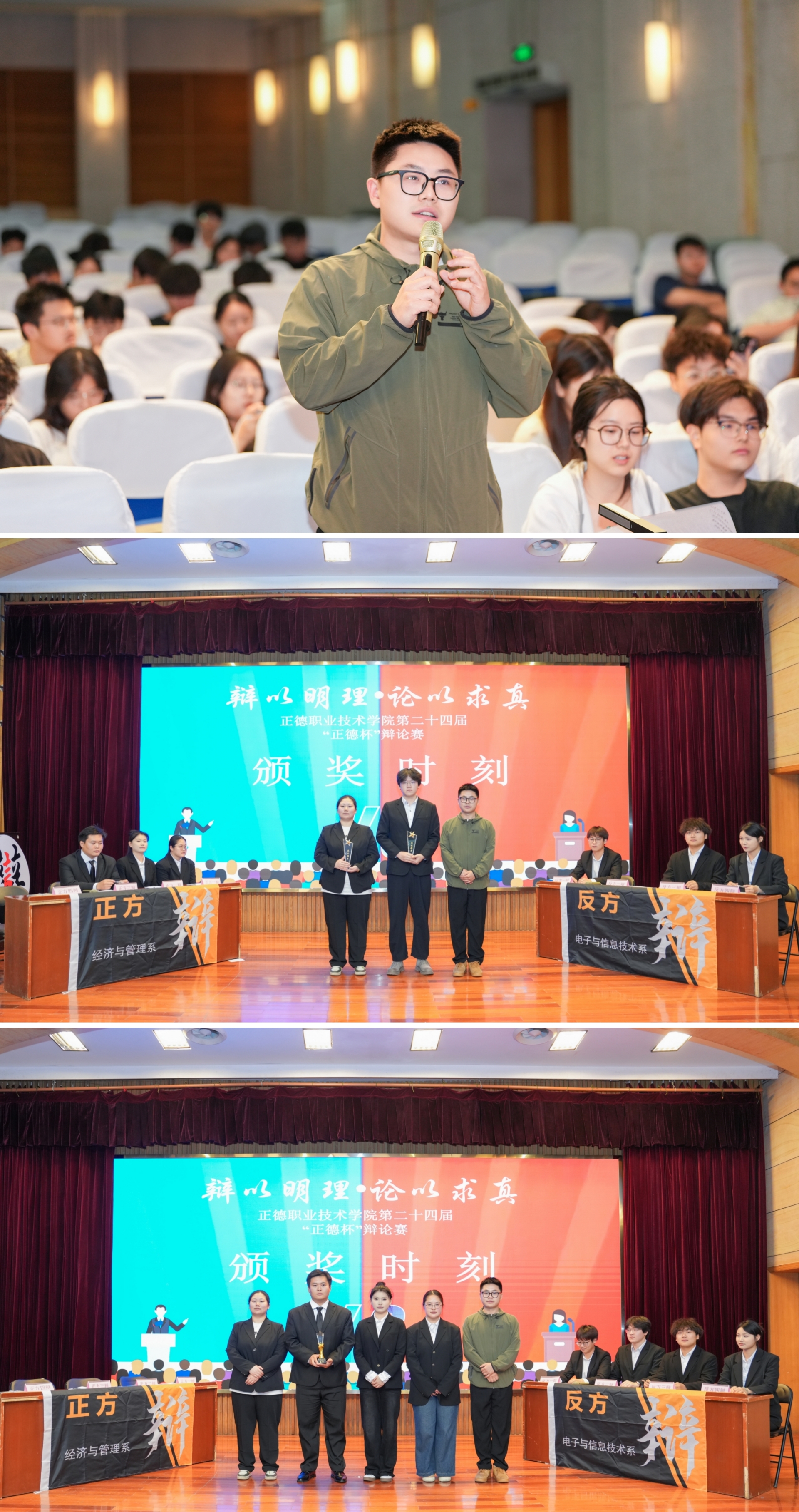 思辨激荡青春,智创赋能未来。 为丰富校园文化生活,进一步提高学生的思辨能力、人文素养、综合素质,展现新时代大学生良好的精神风貌。5月28日晚,院团委在报告厅举办第二十四届“正德杯”辩论赛决赛。院团委书记黄晓帆、副书记魏兴彪出席比赛并担任评委,200余名学生共同观看比赛。