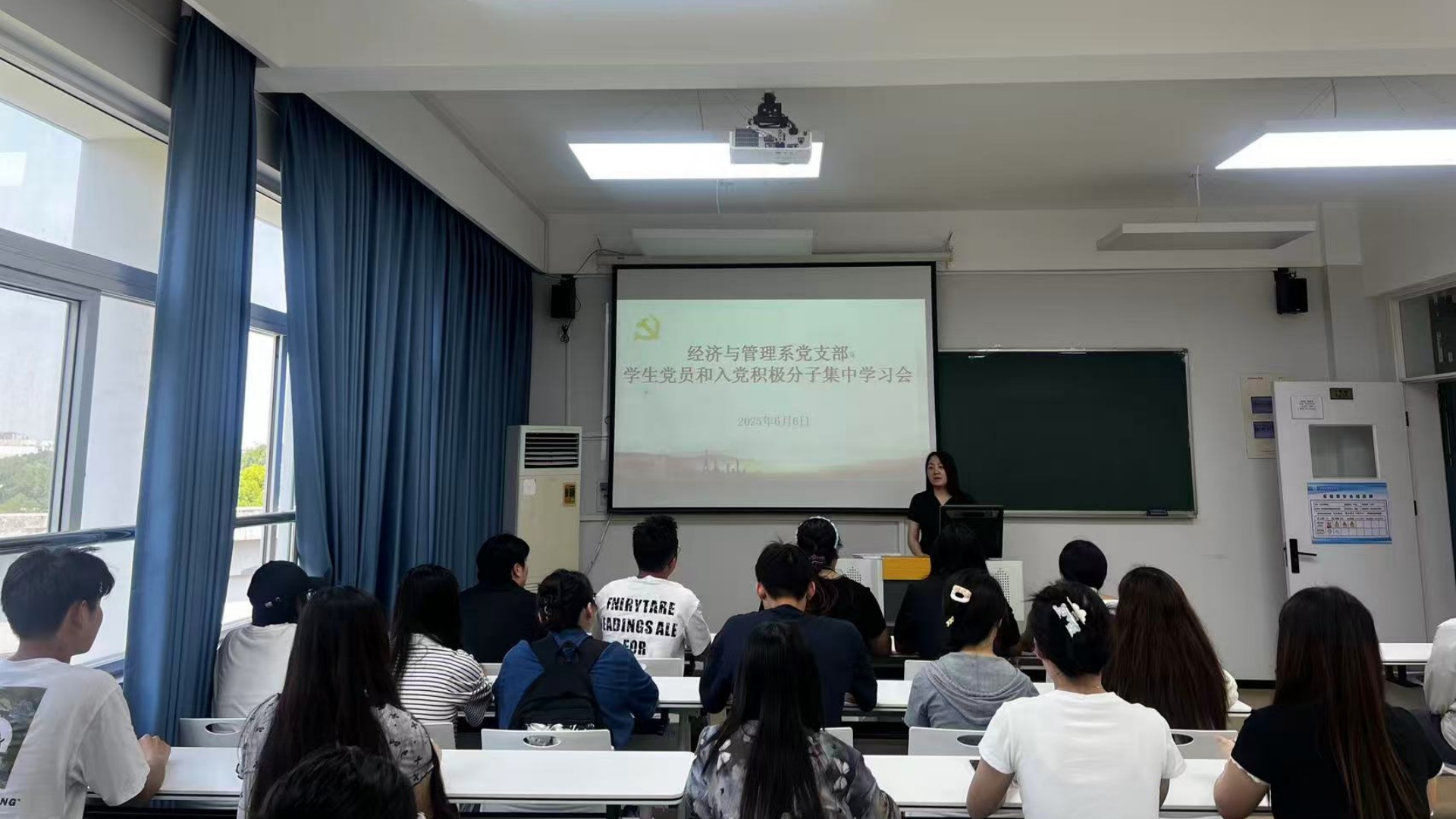 为进一步加强毕业生党员教育管理,引导入党积极分子坚定理想信念,6月6日,经济与管理系在7405教室召开毕业生党员及入党积极分子集中学习会。系党支部书记周慧、组织委员呙竹云及全体毕业生党员、2023级入党积极分子参加会议。