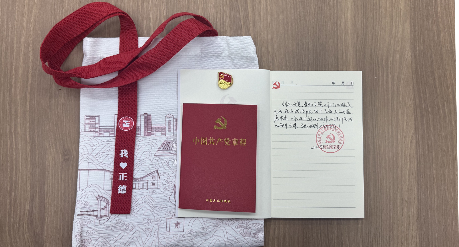 座谈会结束后,党支部为每位毕业生党员发放了精心准备的礼包,里面有党章、党徽、学习笔记本。希望他们回首来时路,初心不改;展望新征程,步履铿锵!