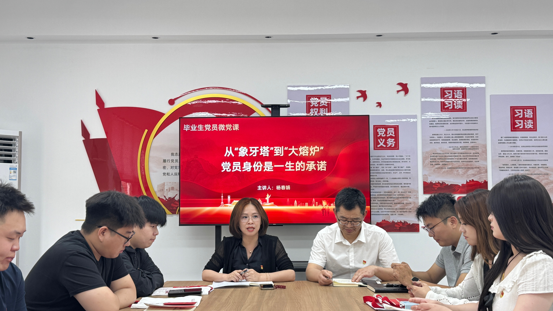 会议伊始,杨春娟以“从‘象牙塔’到‘大熔炉’——党员身份是一生的承诺”为主题上党课。她强调毕业生党员需坚守三个“不能丢”:一是学习意识不能丢,理论学习是“压舱石”,实践学习是“磨刀石”,要持续精读理论文章、利用学习平台;二是组织观念不能丢,组织关系转接要严谨,支部将建立联络群、开展引航计划,让党员离校不离心;三是先锋作用不能丢,要在岗位上建功立业,坚守廉洁自律底线,从“小我”迈向“大我”。