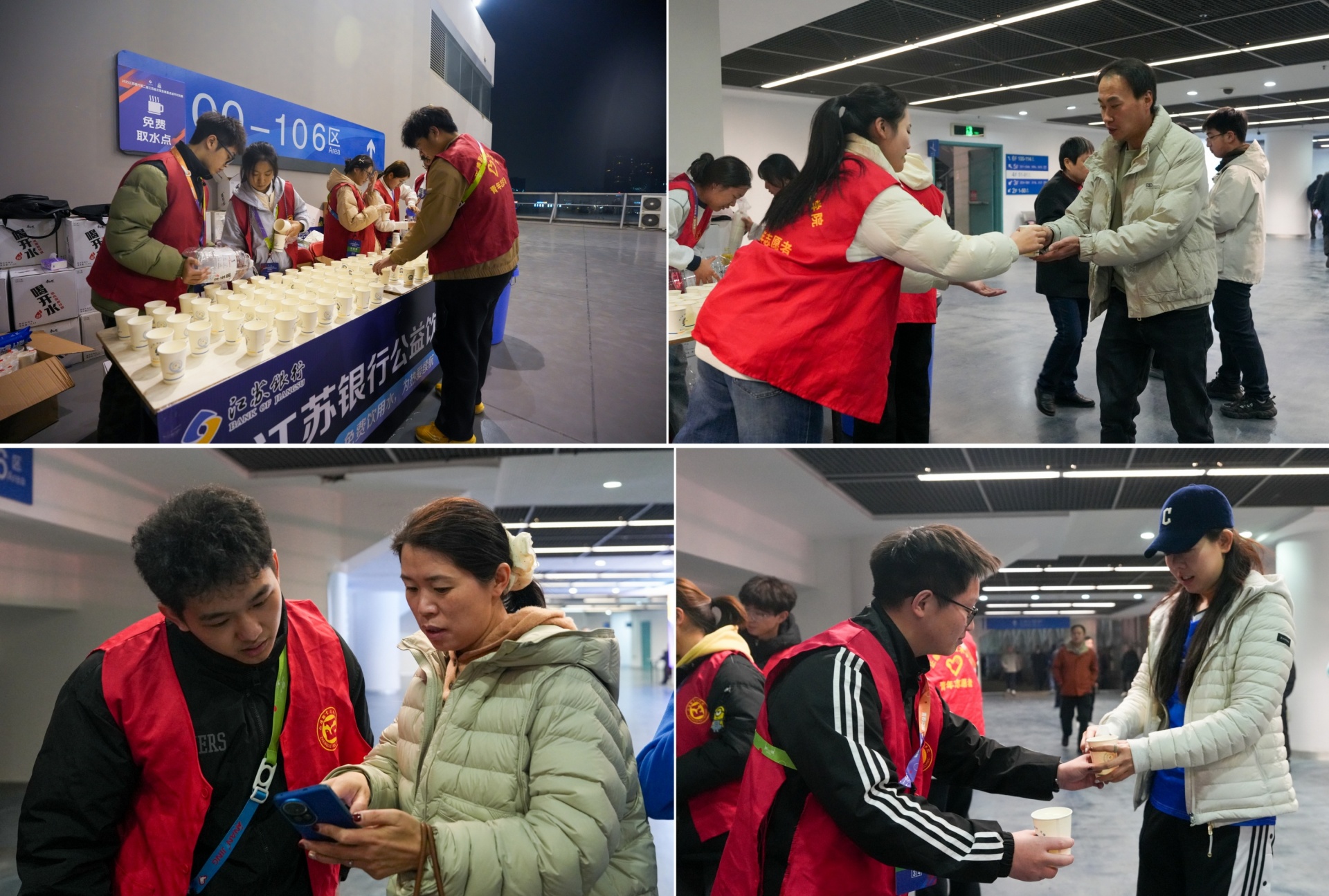 比赛进行时,志愿者的身影活跃在各个关键点位。入口处,他们主动上前迎接观众,轻声指引入场路线;看台通道上,遇到有球迷询问洗手间、饮水点位置,他们耐心应答;饮水点前,哪怕中场休息时队伍排起长队,他们也能快速分工,一边递水一边维持秩序,不让球迷因等待错过赛场精彩瞬间。