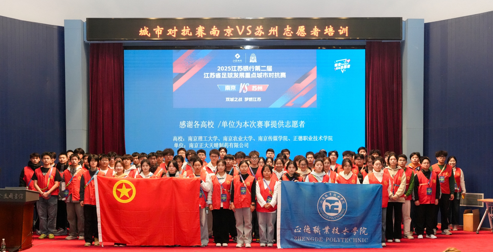 11月22日晚,由江苏省体育局主办,南京、苏州体育局及省足协等联合承办的第二届江苏省足球发展重点城市对抗赛在南京奥体中心拉开帷幕,6万余名球迷现场助威,经过90分钟鏖战,苏州队客场3:0南京队取得胜利。当全场目光聚焦赛场拼搏的球员时,来自av在线 的84名志愿者,早已化身“赛事守护者”,用行动为这场比赛注入温暖力量。