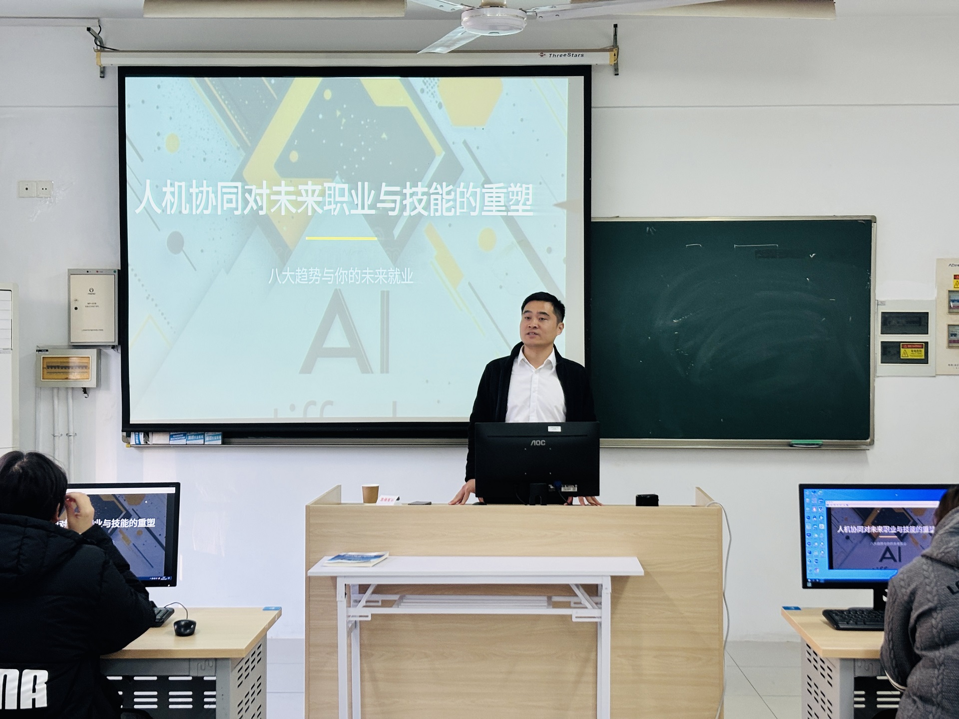 11月25日下午,电子与信息技术系邀请南京竹影信息科技有限公司创始人范玉峰走进课堂,为软件技术专业的大一新生带来了一场题为“人机协同对未来职业与技能的重塑”的专题讲座。讲座内容紧贴行业发展趋势,案例详实,现场气氛活跃,互动热烈,为初入大学校园的学子们指明了在人工智能时代下的学习方向与职业路径。