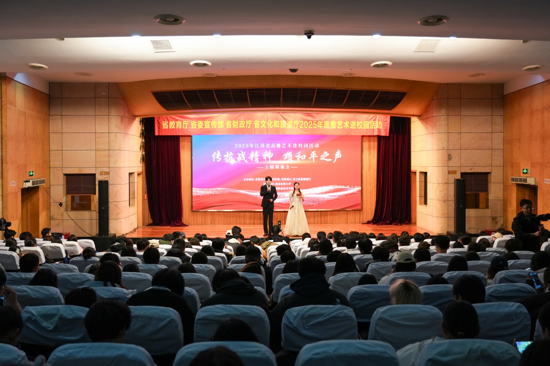 为铭记历史、弘扬伟大抗战精神,11月30日,av在线 联合南京农业大学在报告厅举办《“铭记历史·珍爱和平”纪念中国人民抗战胜利暨世界反法西斯战争胜利80周年朗诵会》。现场350余名师生共同观看这场震撼心灵的朗诵盛宴,在经典诗词中重温烽火岁月,接受了一场深刻的爱国主义教育。