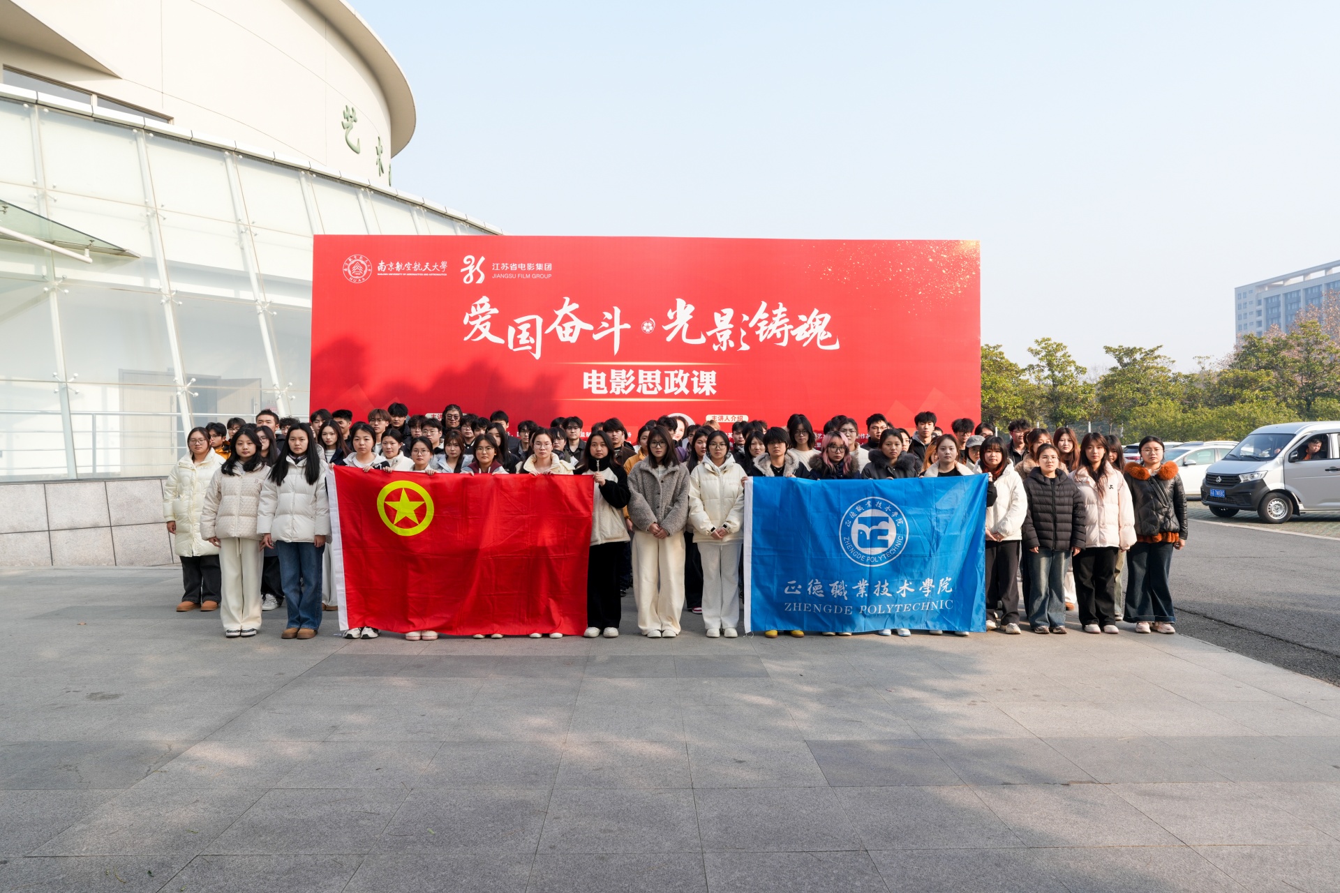 为坚定理想信念,厚植家国情怀,12月17日,av在线 组织100名学生代表赴南京航空航天大学参加“爱国奋斗·光影铸魂”电影思政课活动。此次活动不仅是一次视听盛宴,更是一堂行走的、沉浸式的“大思政课”,让av在线 学子在光影艺术中感受时代脉搏,在思想碰撞中坚定理想信念。