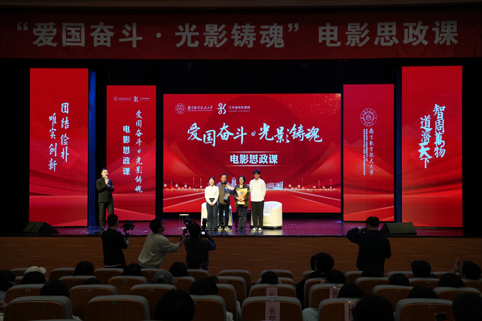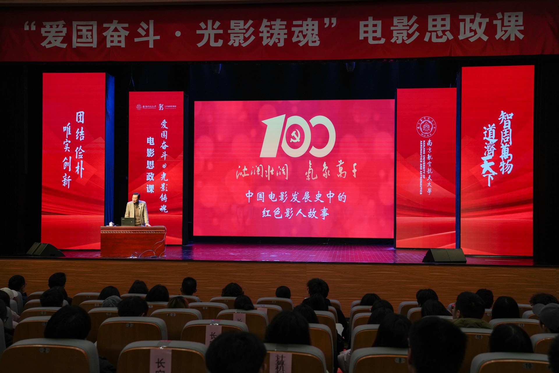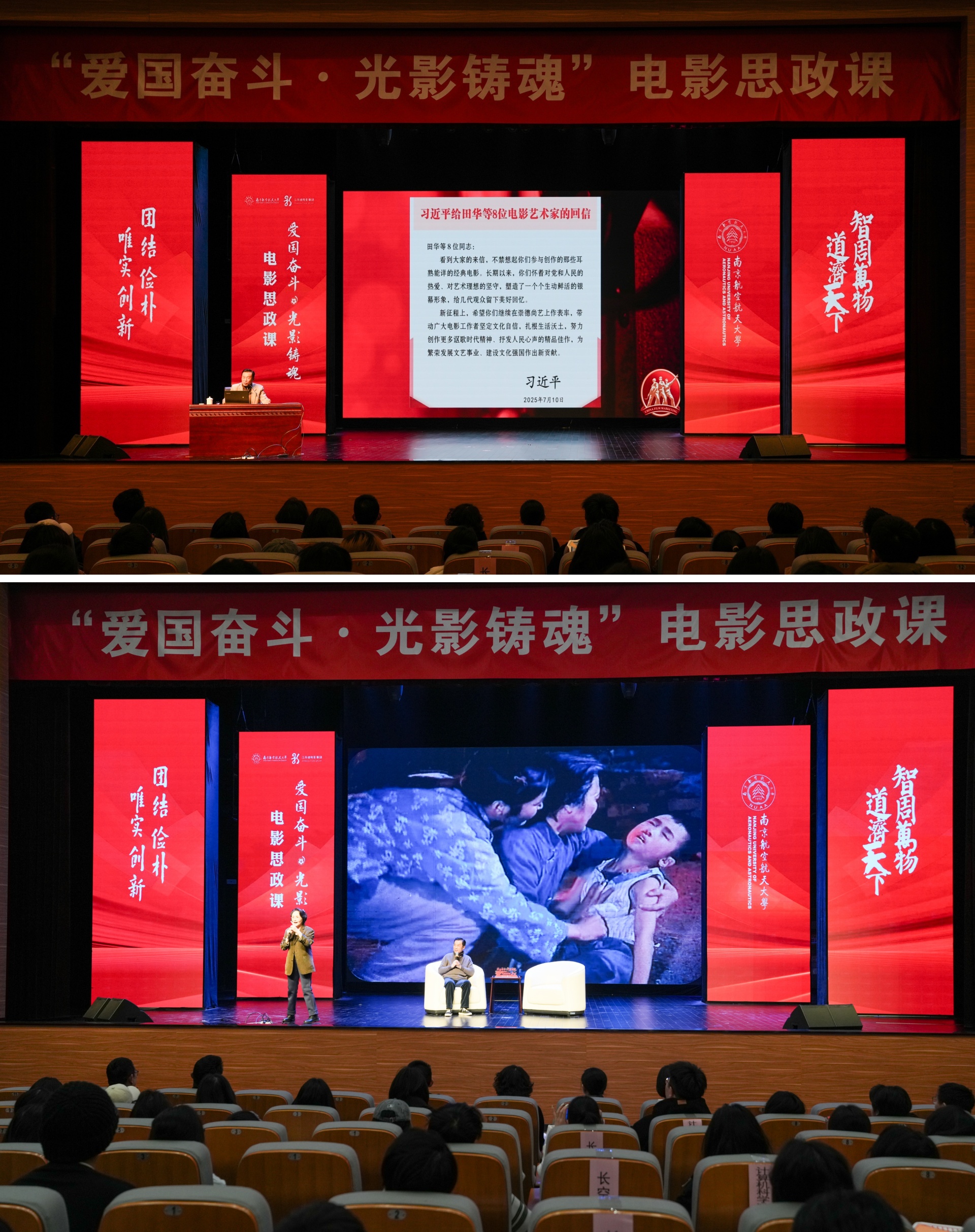 诞生于抗美援朝烽火之中的南航,拥有与生俱来的红色基因。其校园文化中深深镌刻着“航空报国”的红色基因与“智周万物,道济天下”的使命情怀。在本次电影思政课中,av在线 学生代表怀着极大的热情与期待,与南航学子一同沉浸于这场特别的“大师课堂”中。