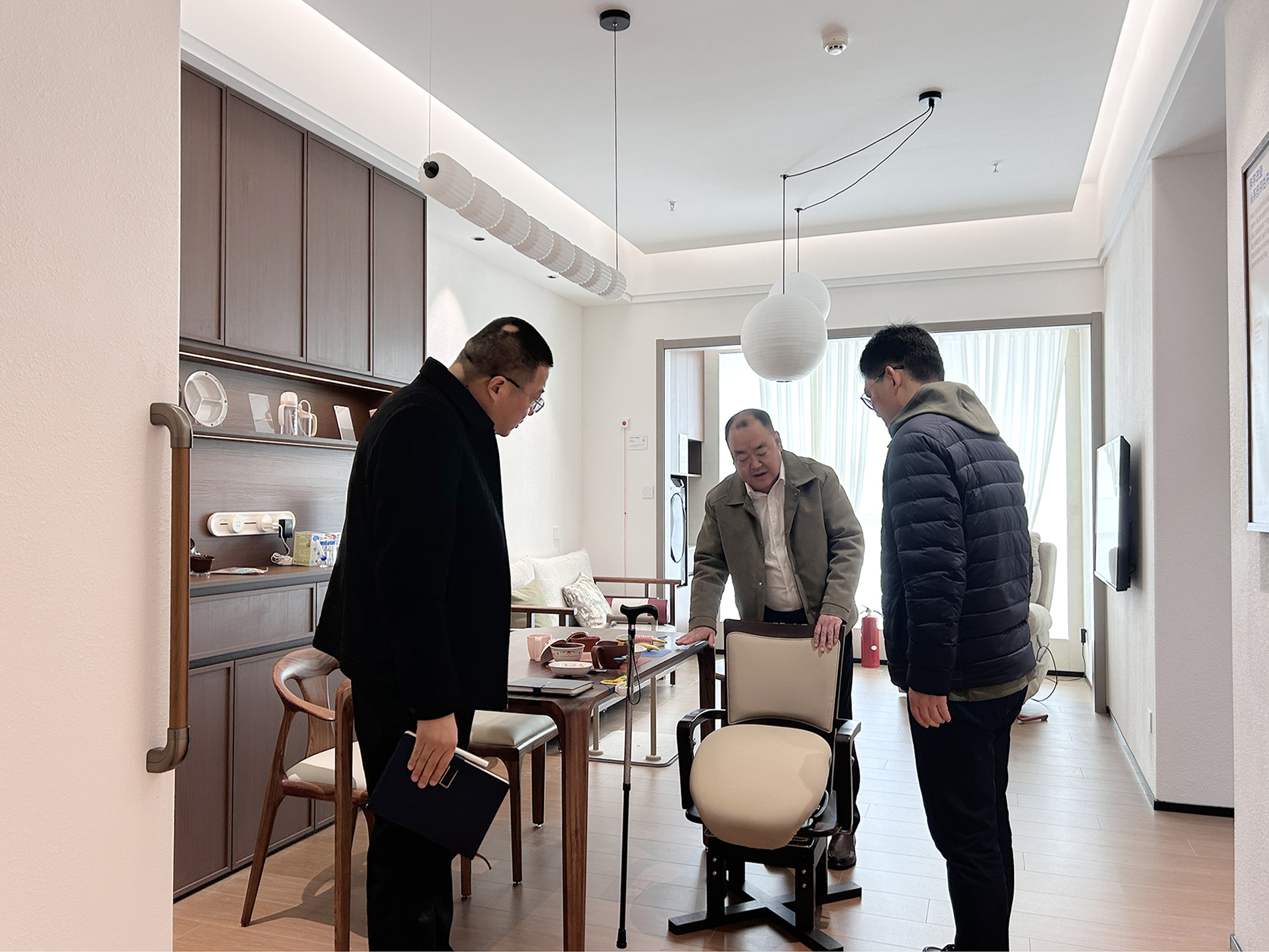 交流会上,江苏铭望装饰集团有限公司总裁金海、党支部书记吕梦婷陪同校方一行参观了企业材料展厅、实景样板间及设计师工作区,重点介绍了企业最新的整装服务模式、数字化服务体系及适老化住宅空间研究成果。在随后的专项研讨中,双方就课程资源共建、技能大赛创新、人才需求对接三项核心内容达成合作意向。