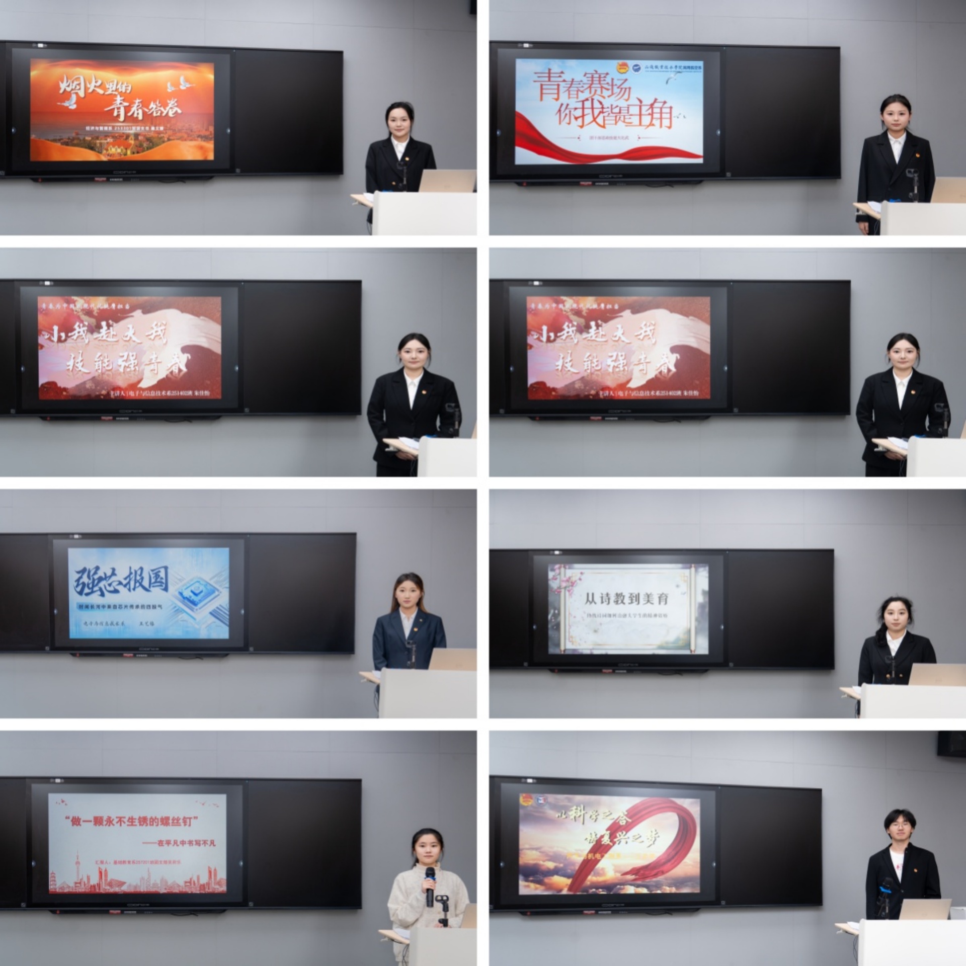 本次决赛聚焦团课宣讲能力,在前期初赛复赛中脱颖而出的8名基层团支部书记走上讲台以青年人的视角展现青年思想、青春力量。比赛中,团支部书记们结合日常学习工作实际,围绕“青春为中国式现代化挺膺担当”主题,用青年学生喜闻乐见的方式,将党的创新理论“大道理”转化为青年身边的“小故事”,带领大家共同体验了一场“沉浸式”主题团课。