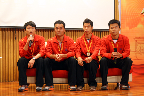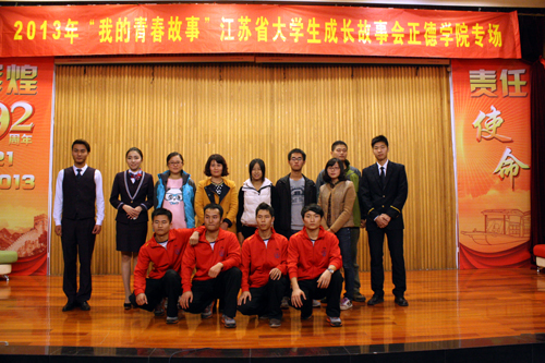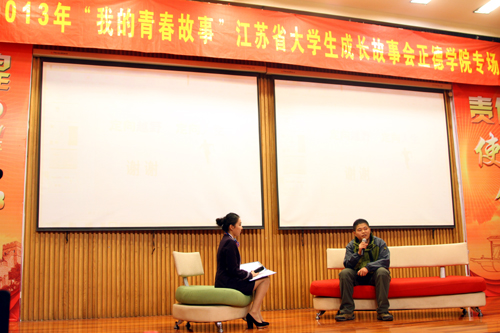 11月13日下午,由共青团江苏省委主办、片区高校承办的2013“我的青春故事”江苏省大学生成长故事会正德专场在av在线 报告厅隆重举行。来自av在线 民用航空系“飞行之星”吴晓晨、“职业规划之星”工商管理系王高灵、江苏海事职业技术学院的“职业技能之星”团队、南京视觉艺术职业技术学院的“支教之星”海雯、南京机电职业技术学院的“行动之星”刘桐倾情讲述了他们的成长经历和感悟,受到在场300余名师生的热烈欢迎。