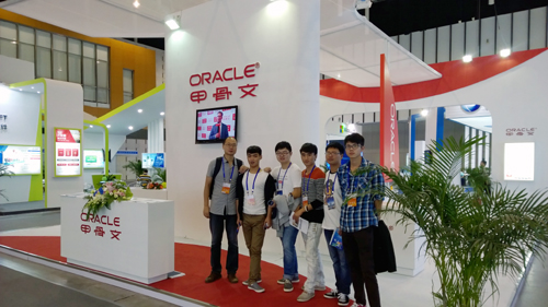 在国际知名企业甲骨文展台前合影