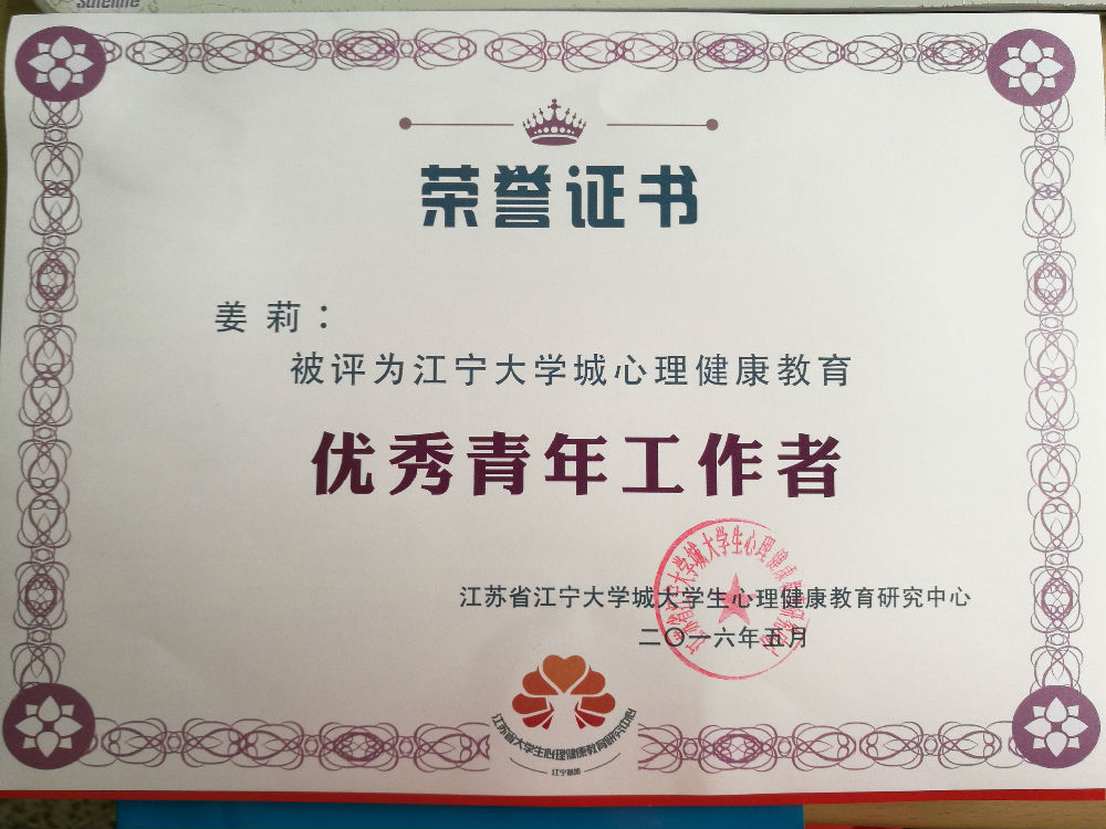 姜莉老师获评优秀青年工作者