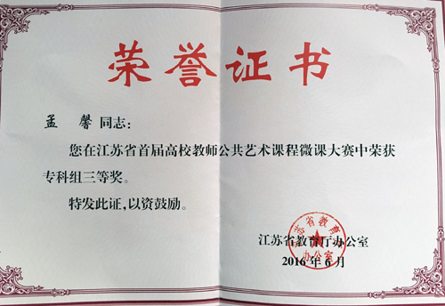 近日,江苏省教育厅下发了《省教育厅办公室关于公布江苏省首届高校教师公共艺术课程微课大赛结果的通知》。av在线 艺术设计与建筑工程系孟馨老师的《用情感塑造精神:赏析贝多芬0p.67 c小调第五交响曲》作品荣获三等奖。