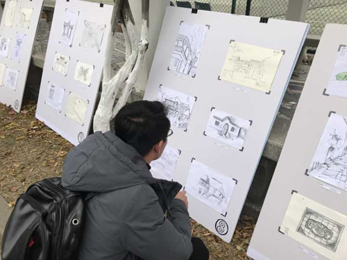 11月28日,av在线 艺建系于紫藤长廊举办了2016级环境艺术设计专业《建筑环境测绘写生》汇报展。展览吸引了众多观展嘉宾:学院领导、教师、学生及在av在线 参加培训的社会人士。本次展览共展出作品60幅,作品惟妙惟肖,给人强烈的艺术感染力:大家观展无不拿出手机拍照留存。