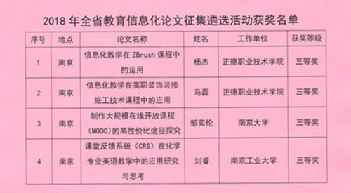 艺术设计与建筑工程系马磊老师的论文《信息技术环境下建筑装饰工艺课程智慧课堂的教学探索》和杨杰老师的论文《信息化教学在ZBrush课程中的运用》分别荣获优秀论文三等奖。